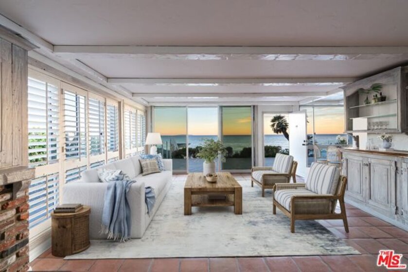 Set on Malibu's iconic Carbon Beach, this rare first-floor corner residence at the Malibu Outrigger captures the essence of refined coastal living. Steps from the private sandy beach and the Outrigger's oceanfront pool and spa, this sophisticated 2-bedroom, 2-bath retreat offers sweeping whitewater vistas from sunrise to the Queen's Necklace glowing at night. Inside, an updated, flexible floor plan blends relaxed elegance with warm, timeless finishes. The open kitchen and spacious dining area flow seamlessly into a living room anchored by a wood-burning fireplace, with distressed wood accents and artisan tile adding texture and character. Walls of glass extend the living space outward to an expansive, intimate patio perfect for morning coffee, sunset entertaining, or dining to the sound of the surf. The premier corner location enhances natural light and coastal breezes, creating an atmosphere of serenity throughout. From this coveted beachfront setting, stroll along the sand to Nobu, Soho House, the Malibu Pier, and the area's most celebrated restaurants. Offering private beach access, resort-style amenities, and an unbeatable Carbon Beach address, this residence presents an extraordinary opportunity to enjoy Malibu living at its most iconic. Property has been virtually staged.