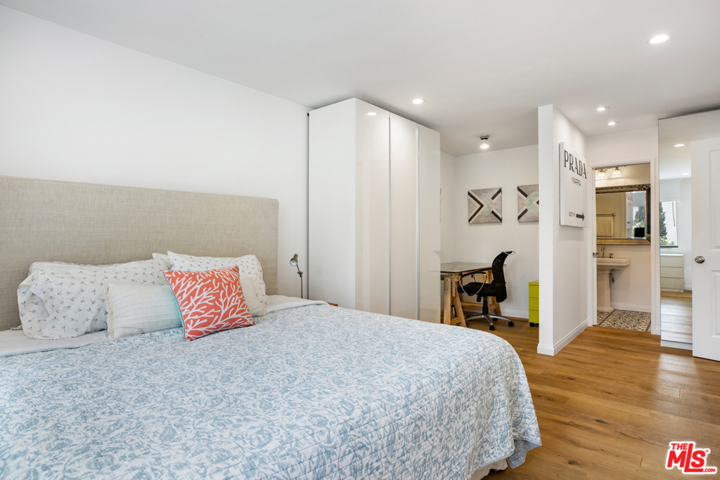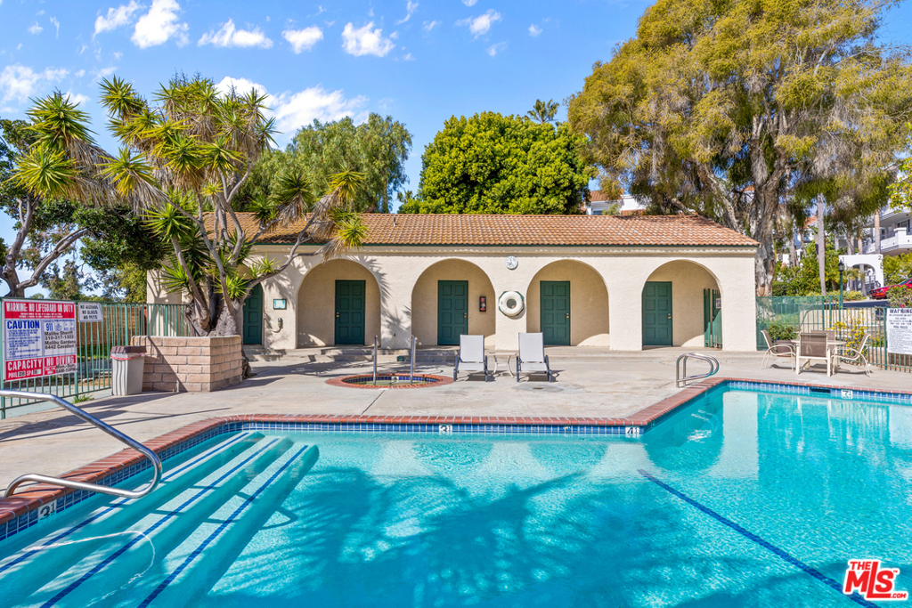 Ultra-sophisticated upper floor condo in Malibu Gardens, located in the quite part of the complex. Come home to beautiful wood floors, a Bosch refrigerator, a Miele espresso machine, Fisher & Paykel dishwasher drawers, and a Bosch washer/dryer. Enjoy a generously sized master bedroom with high-end floor tiles and a smart toilet in the master bathroom. There's a warm and cozy fireplace in the living room, surrounded by crisp, white built-ins. The public spaces are configured as a great room so you can be with your guests while you cook. There's a balcony off the living room and main bedroom and open doors create a nice cross breeze. There's a sparkling pool and spa. Located close to Zuma Beach, Point Dume, Vintage Grocers, Paradise Cove. Convenient to restaurants and stores, this is a great way to partake in the Malibu lifestyle.