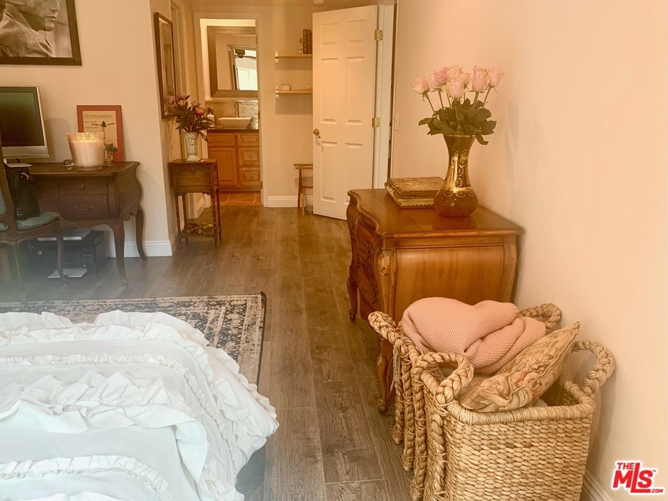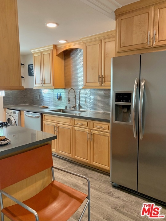 This is it! The UPPER unit you've been looking for! Enter this magical, European pied-a-terre as you walk into this turn-key, elegant, designer-enhanced & beautifully-appointed 2 bedroom/2 bath charmer w/ garden views. Gorgeous upgrades throughout, including crown molding, recessed lighting, ceiling fans, fireplace & new double-paned sliders, doors & windows. The motif is perfectly curated w/ sealed-concrete kitchen counter tops, including eye-popping, stainless-steel back splash througout, beautiful built-in appliances & sought-after, in-unit washer & dryer. Plenty of storage, light & bright w/new paint throughout. The spacious, main bedroom has a bonus, storage-friendly walk-in closet. The main bathroom has upgraded, rare, double-sink vanity. The 2nd over-sized bedroom is light and bright & has a roomy closet w/ bathroom. Lounge & have coffee on the Lanai or head over to the pool, spa and/or sport court on the property! Under-ground garage w/ 2-car, tandem parking is included, just