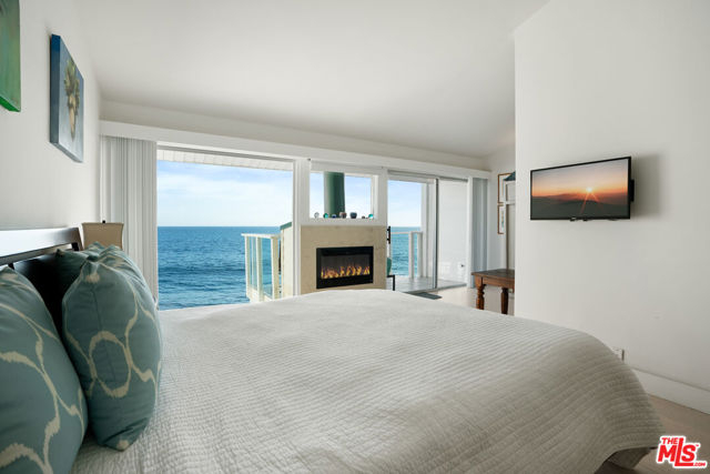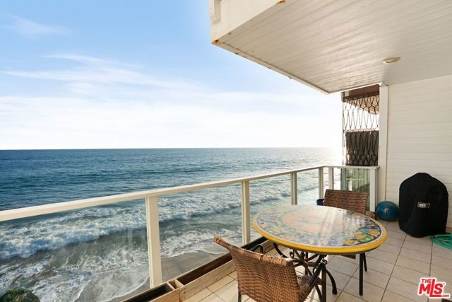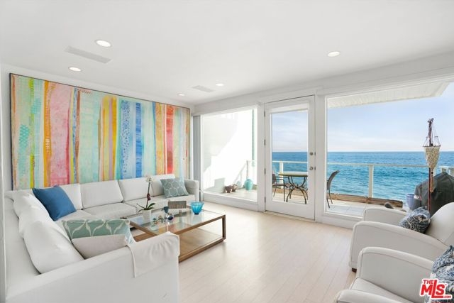 A rare offering along Malibu's prestigious La Costa Beach, this expansive one-bedroom, townhome-style condominium with new luxury wide plank floor throughout invites a lifestyle of coastal leisure. Enter through a private foyer that opens to sweeping ocean views and the sound of crashing waves. The entry level features a powder room, guest closet, and ample storage, setting the stage for comfort and convenience. An open-concept kitchen with breakfast bar flows into a generous dining area, which leads down to a soaring, high-ceiling living room. Walls of glass invite the Pacific in, leading to a spacious oceanfront deck morning coffee by the sea. Upstairs, the primary suite is a tranquil retreat with a cozy fireplace, an oversized walk-in closet, a second balcony and a spa-like bath boasting dual vanities and a walk-in shower. An adjacent office alcove offers the flexibility for a guest space or creative studio. In-unit laundry is also included. This gated enclave offers private beach access, covered parking, and guest parking, additional private storage all moments from Santa Monica and local landmarks like Duke's Malibu. A unique opportunity to live and breathe the Malibu dream!