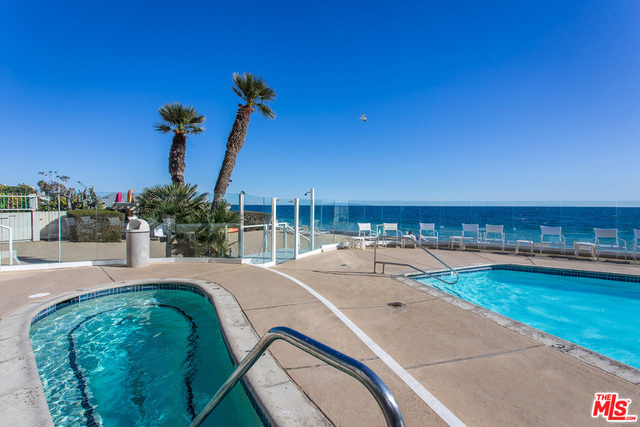 The Ultimate Resort Living-Perched above prestigious Carbon Beach. This sleek sophisticated contemporary two bedroom, two bathroom condominium boasts breathtaking Ocean expanses from all major rooms. Dramatic vistas capture glorious sunrises to the sparkle of the Queen's Necklace by moonlight and beyond. The coveted corner location and flexible floor plan features s spacious, intimate patio, open kitchen and wood burning fireplace. Unique Malibu Outrigger amenities include a year round heated pool and spa, private sandy beach with shaded arbor and resident management team. Stroll to fine dining, retail and all of Malibu's Magic.