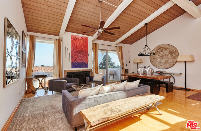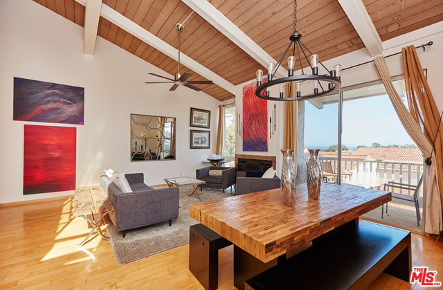 Phenomenal Top row corner unit with incredible ocean views. This upgraded 3 bedroom unit has an abundance of natural light with vaulted wood beam ceilings and hardwood floors throughout. The spacious living room has a large romantic fireplace and deck to further enjoy the ocean views and fresh breeze. The kitchen has upgraded appliances, granite countertops and customized cabinets. On the lower level is a large guest bedroom with an en suite full bath and access to an outside patio. The Master suite has a large walk-in closet, spa tub, shower, dual sink with granite counter tops and private balcony with ocean views. The third loft style bedroom can be used as an office or bedroom and has its own large built in closet, bathroom with shower and ocean view. This unit has the best best parking available with street parking just outside of your front door as well as a large two car garage with direct access and a vast amount of storage space. Prime location to enjoy Malibu at its finest.
