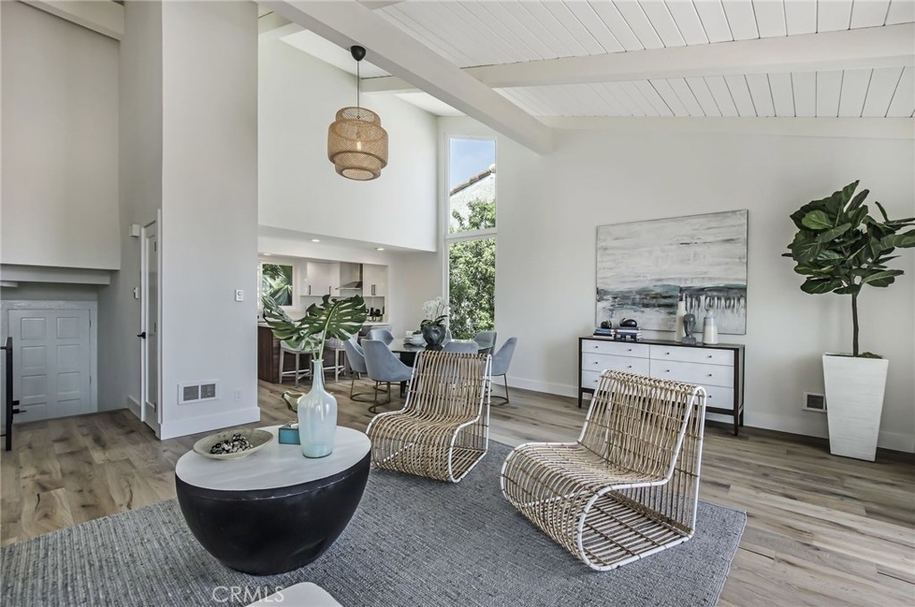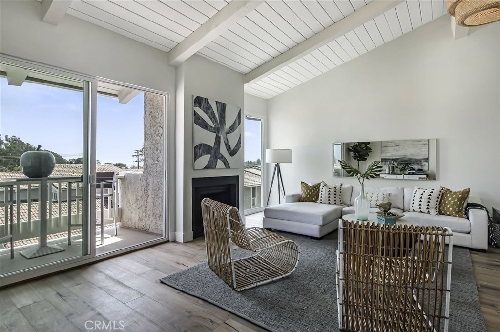 You will fall in love with this delightful town home. Bright and peaceful end unit with modern California coastal design. Perched up and private with multiple outdoor spaces, lush landscaping and peek-a-poo ocean views. Located in the guard gated Malibu Villas with updated pool and spa, clubhouse, and succulent rich grounds. Three bedrooms, three bathrooms, warm oak floors throughout with floating stairs, beautiful open kitchen, elegant bathrooms, vaulted ceilings, fireplace, and a two car garage.