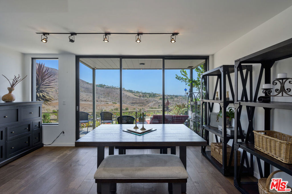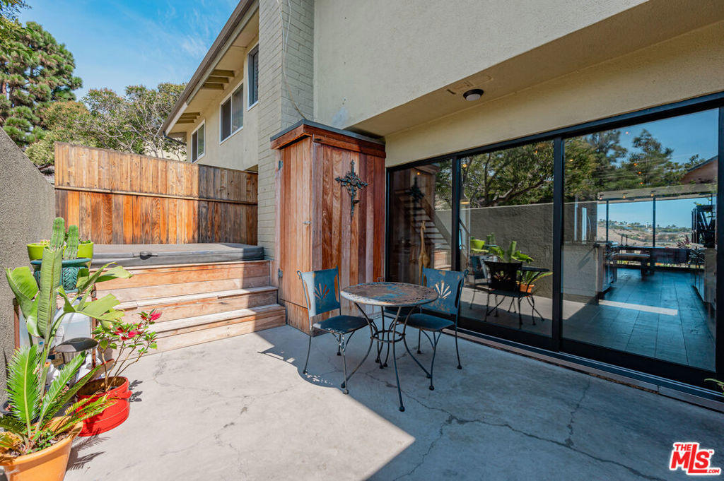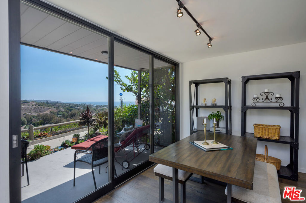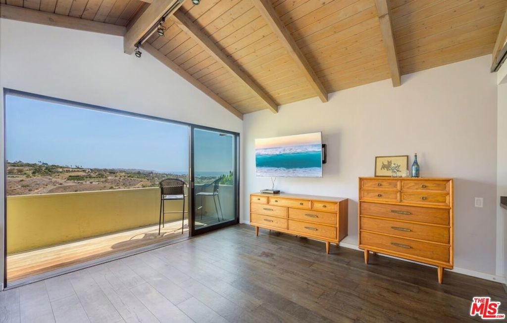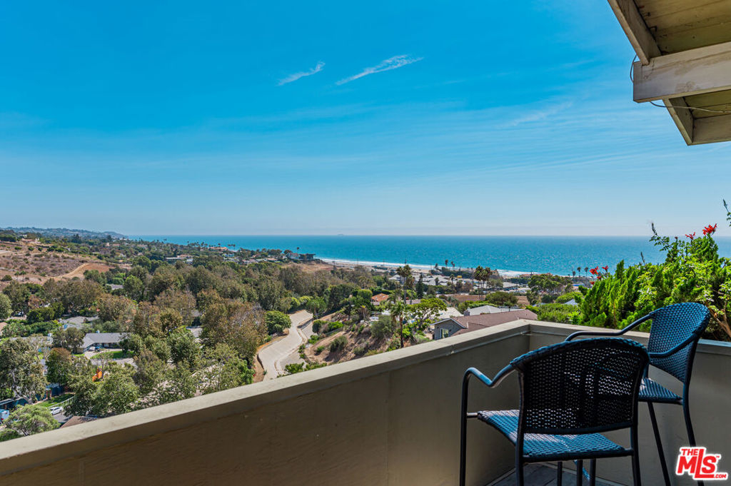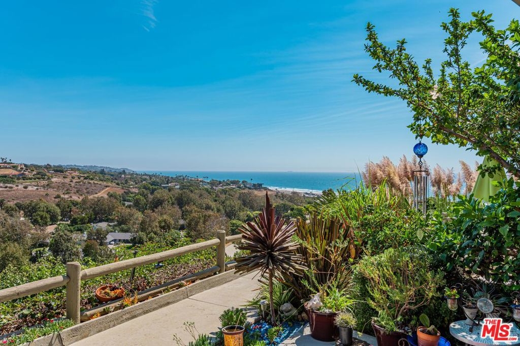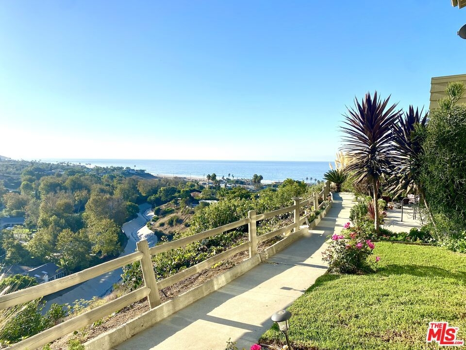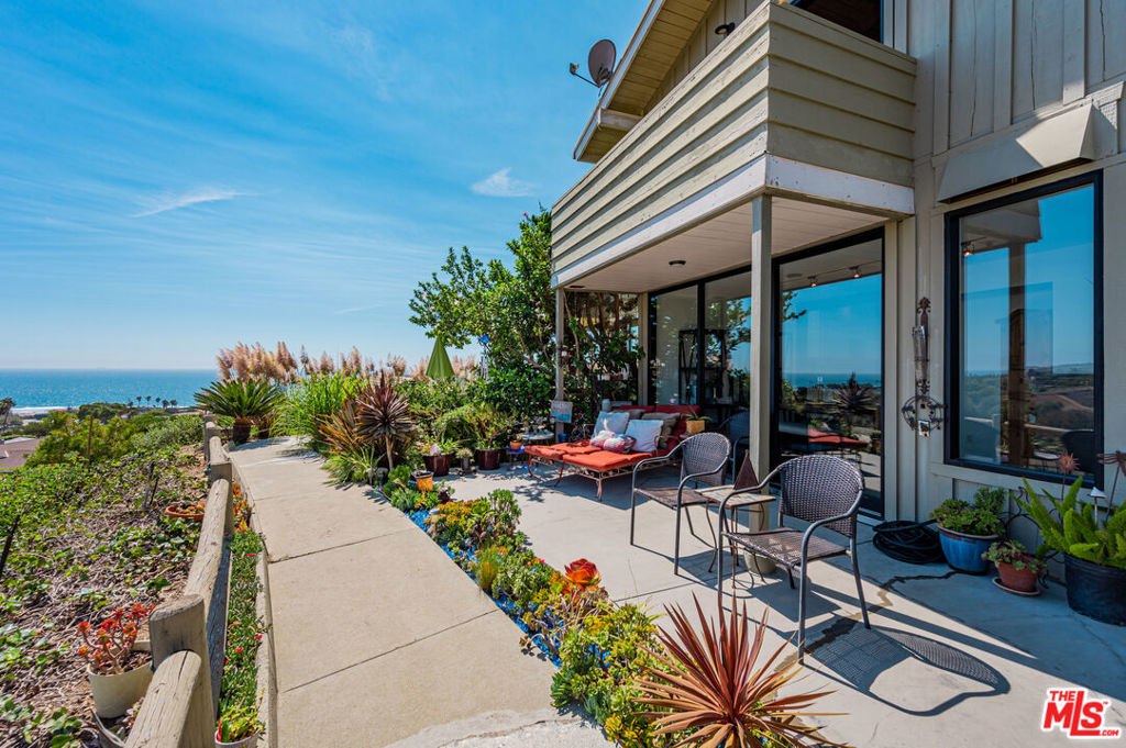 Panoramic ocean view town home in coveted Malibu West with private beach club rights. Rare front row unit has 3 bedrooms, 2.5 baths and has been fully remodeled with hardwood floors, Fleetwood sliders and tasteful finishes throughout. The open floor plan has a comfortable flow that lends itself to indoor/outdoor living with a front ocean view patio off the dining area and a private courtyard with hot tub that opens to the living and kitchen space. The spacious great room has a fireplace and exposed beams in the chef's kitchen with a Thermador range, stainless appliances and a breakfast bar. The primary suite has an expansive ocean view from the private deck, dual closets, vaulted wood ceiling and custom steel barn door encasing the primary bathroom. Enjoy the private beach club, 2 tennis courts, community pool, Trancas Country Mart and beaches all within walking distance.