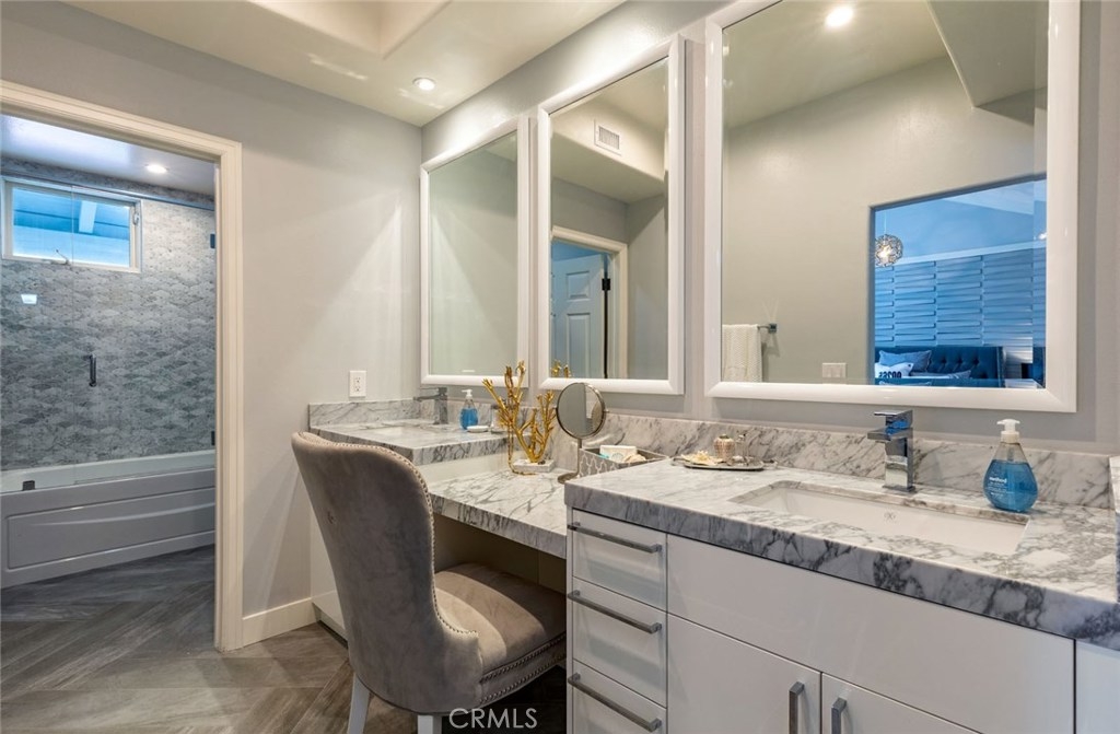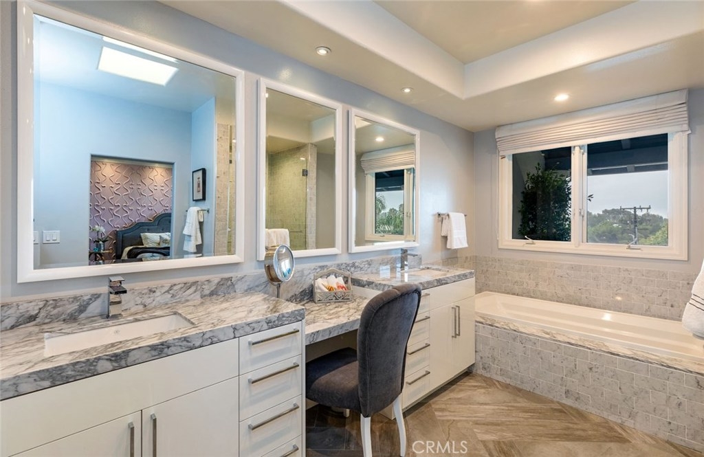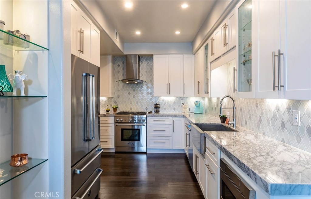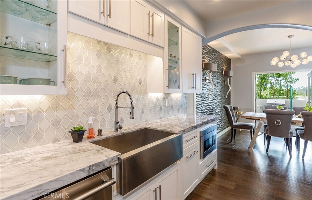 Newly remodeled Contemporary town-home is located in West Malibu, just minutes from Paradise Cove and across from Point Dume in a gated community . This highly sought after town-home has a blend of elegance and sophistication with Malibu flair featuring a state of the art kitchen with stainless steel appliances , Carrara marble counter-tops , Italian glass /marble backslash and new custom cabinets . The over sized family room features a new marble fire place and glass shelving to display your favorite art pieces . The dinning area has a featured wall with waved panels for a dramatic and unique look that showcases the room beautifully . The two bedrooms each offer a custom wall with panels for the contemporary look , 18 ft. multi windows with modern drapery , high ceilings and walk-in closets . The master bedroom has a marble fireplace and built-in luxe cabinets . Each bedroom with its own upgraded bathroom including luxe custom cabinetry , Carrara marble counter-tops , subway marble showers/ bathtub and lux framed mirrors . This open floor plane also has new Malibu glass doors leading to the private backyard patio with newly planted trees for privacy and offers plenty of space for entertaining along with a peek-a-boo ocean view Extra features include a inside laundry room , 2 car attached garage including lots of cabinets for storage and epoxy flooring , air conditioning , nest thermostat , security alarm system and a community sparkling swimming pool