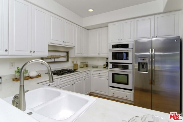 Welcome home to the largest unit at The Portico, located in close proximity to the beach, Pepperdine, Paradise Cove Beach Cafe, shops, and restaurants. Set back from PCH behind security gates, this 2 bedroom, 2.5 bathroom townhome offers peace and quiet along with many upgrades. Spend your days entertaining in the two oversized living areas leading out to the private, sunny, open patio, also great for relaxing. Chef's kitchen looks out to the dining room and includes everything you need from a separate cooktop, to an oven with built-in microwave above.  Soaring high ceilings let in an abundance of light upstairs and downstairs. Both of the bedrooms are master suites, located on the upper level, with en-suite bathrooms and terraces, one of which has a peek-a-boo view of the ocean. Powder room on the main level and private 2-car direct access garage with laundry complete this idyllic beach oasis.