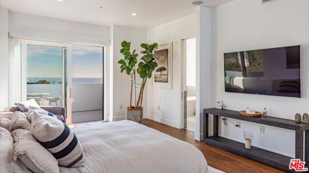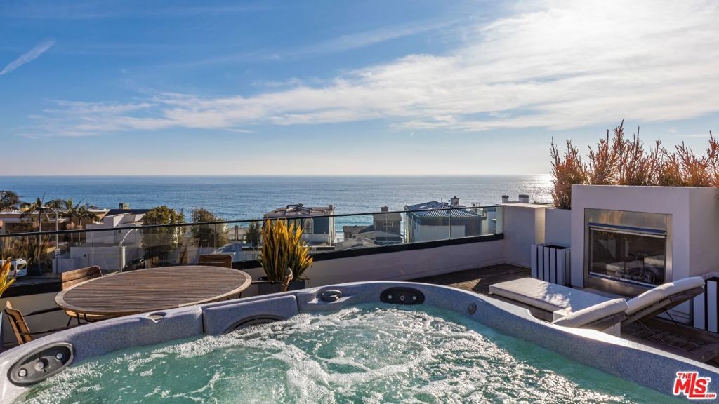 Steps from famed Carbon Beach, enjoy exquisite views, fresh interiors and a Malibu lifestyle of style and ease. With 3 beds, 3 baths and 3,324 SF of living space across 3 levels, curate the life of your dreams within these enchanting walls. Inside are hardwood floors, 11-foot ceilings, and fresh white paint. The chef's kitchen connects to a dining room and a living area with a fireplace. Upstairs, find 3 ensuite bedrooms and a laundry area. Enjoy 2 beautiful balconies featuring coastline views. Take in scenery from Palos Verdes to Point Dume from the roof deck with a hot tub, fireplace and surround sound. The primary suite is a tranquil retreat, offering ocean views, a custom walk-in closet and a spa-like bathroom. Surround sound, automatic blinds, iPad controls, a security system, 2 secure 2-car garages, guest parking, a storage room and a private elevator with access to the garage, living and bedroom levels make life a breeze.