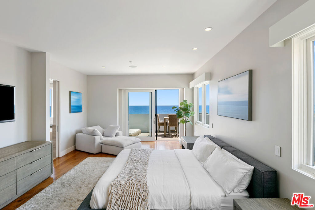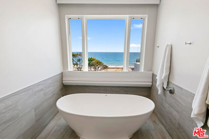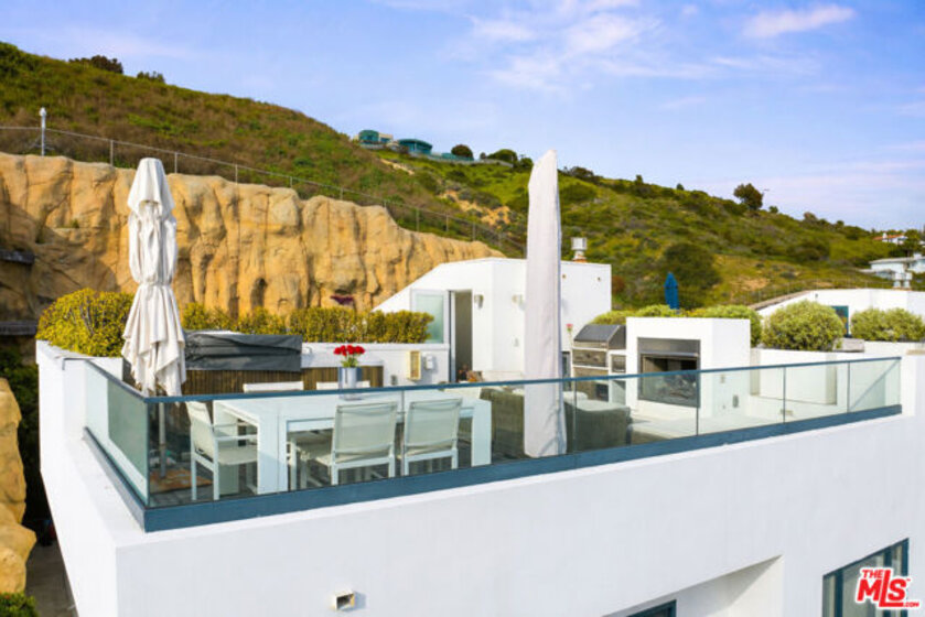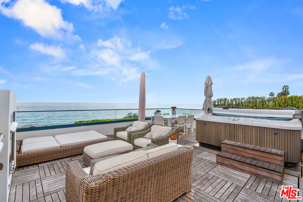 Whitewater views and spacious amenities make this townhome worth the ride on the newly opened Pacific Coast Highway. With over 3,300 square feet of luxury living, this is the perfect weekend, summer or full time beach retreat in an extremely desirable location. Immerse yourself in the Malibu coastal lifestyle in this stunning ocean view property located in the Residences at Carbon Beach and just a shell's throw from famed Billionaire's beach. Welcome to Residence #1, the premier end unit of 8 total residences with the best views and amenities. Commanding ocean views abound from all living areas, balconies and the dream rooftop terrace with built-in barbecue, refrigerator, 8-person spa and panoramic views from Santa Monica to the Malibu Pier and beyond. Infused with contemporary elegance, high ceilings and incredible light, the main floor boasts an open floor plan lending itself to both easy entertaining and gracious personal living. The cozy breakfast area leads to a dazzling chef's kitchen with marble countertops awaiting your culinary skills. The focal points of the dining area are the custom glass chandelier and the newly built wine wall. A cozy built-in office is located under the stairs. The second level features a primary suite with an ocean view spa bath and two guest en-suite bedrooms. Additional amenities include a Savant control system, automatic shades, a recently installed LED recessed lighting system and a private elevator. The gated drive through entry leads to the lower level with private dual 2-car garages for this residence and a bonus mirrored exercise room. Enjoy convenient nights out at Nobu, Tramonto and V's, your neighborhood restaurants. The time is now to make this trophy property your new home.