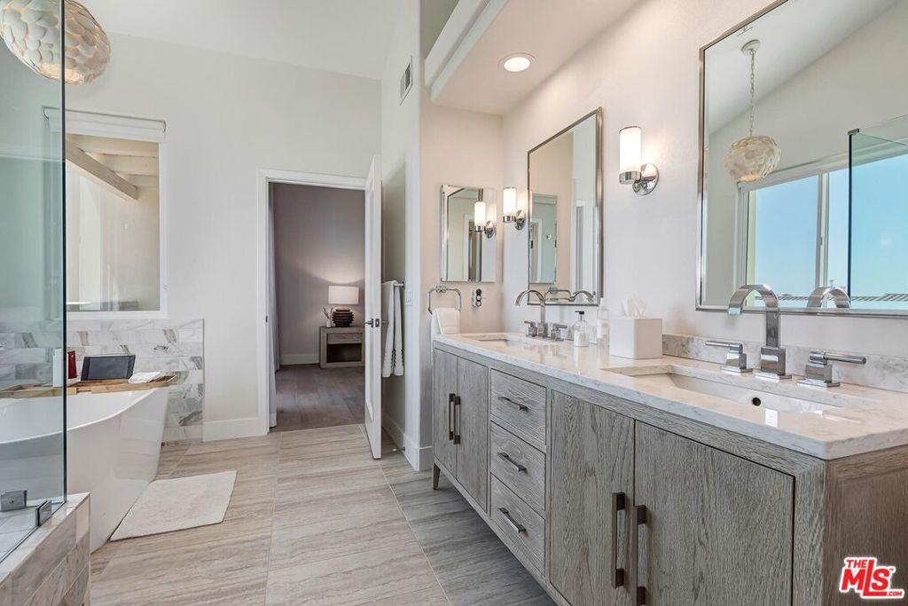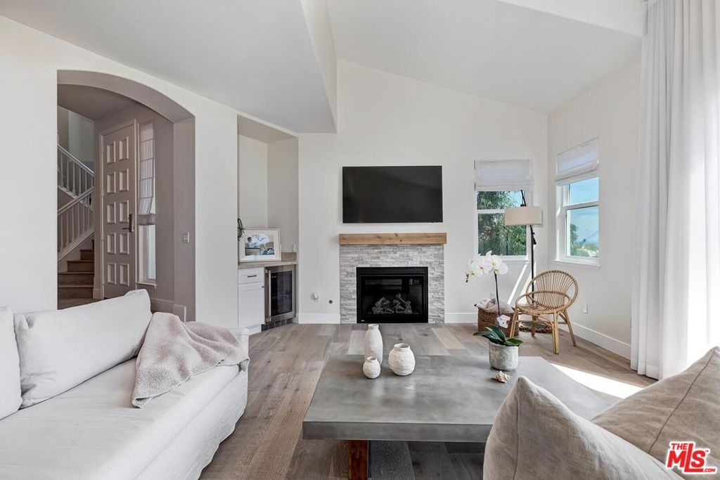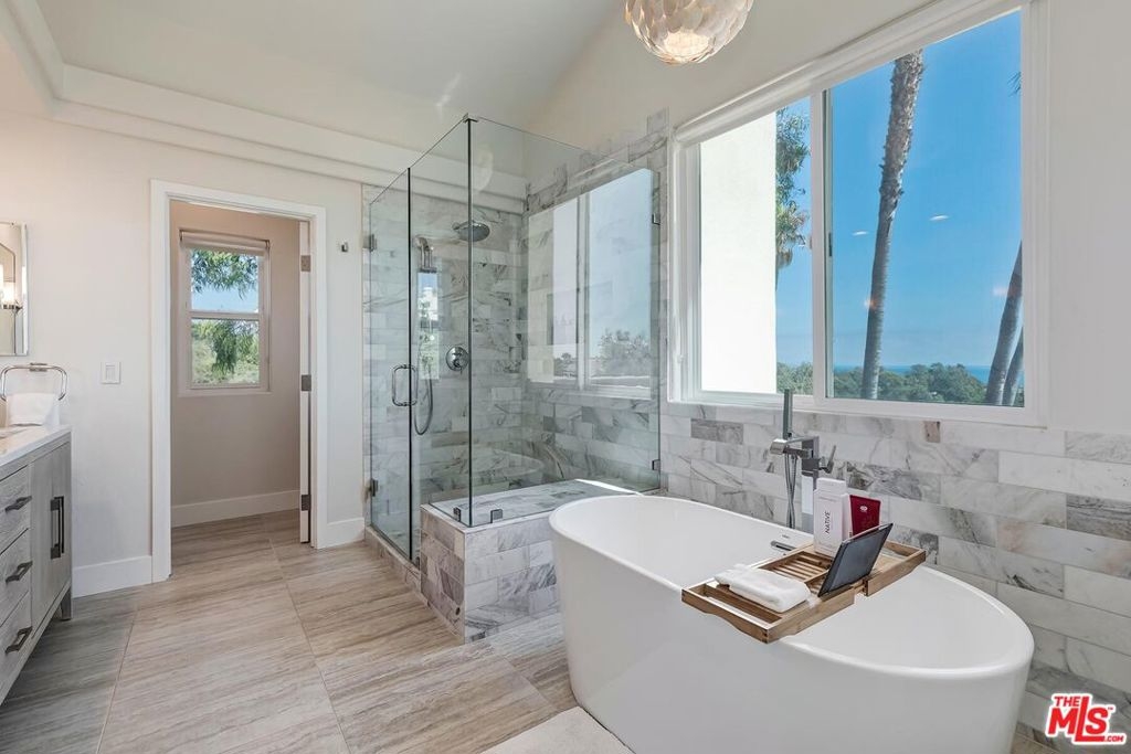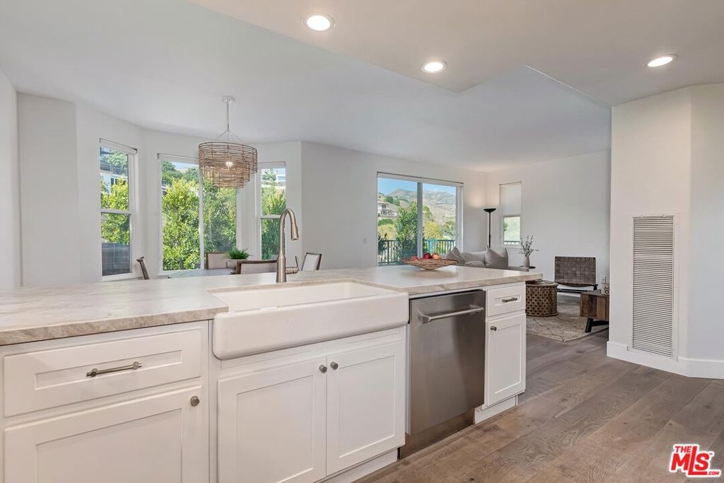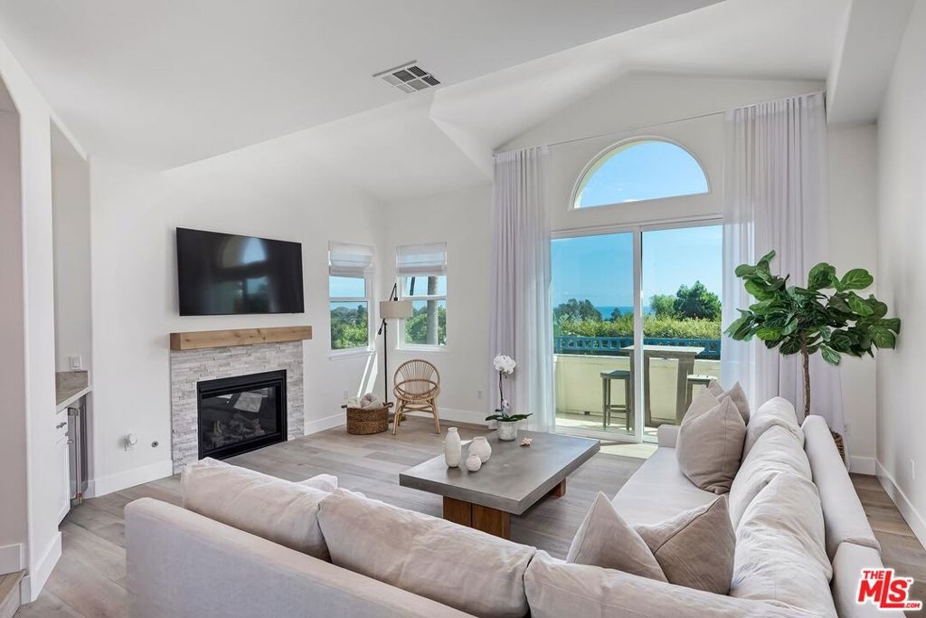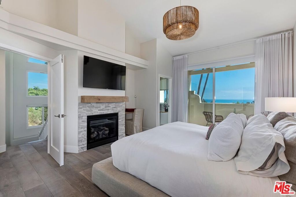 Resort Style Living in Beautiful, Breezy Malibu. This Fabulous 3 Bedroom, 3 Bath Townhouse boasts the best location. Back row east corner unit with privacy galore and sweeping ocean and canyon views. Newly remodeled with a cook's kitchen, stainless steel appliances including Z-line range, dishwasher, microwave drawer and Bosch Refrigerator. Organic earth tone tile backsplash against Taj Mahal quartzite countertops and peninsula that opens to the breakfast area, family room and patio, perfect for year round entertaining. Upstairs the primary suite has a walk-in closet fireplace and a panoramic view of the Pacific Ocean that is shared by the luxurious master bath. For formal affairs the dining room and step down living room with fireplace and wine fridge enjoy the ocean view and cool breeze. High ceilings provide a light and airy vibe. Amenities include a gym, pool and spa and a N/S tennis court with pickleball lines.