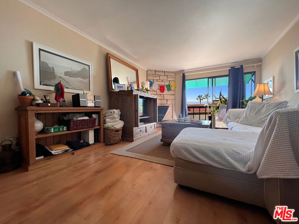 Light and bright unit with ocean views from the bedroom and living area. Enjoy night time city lights from the balcony. Open floor plan; kitchen, dining and living room with fireplace. Large master bedroom with walk-in closet. 2 dedicated parking spaces; subterranean in the garage with a large storage unit. Located in the highly sought after Tivoli Cove community known for its coastal views and year round resort-style living. Residents enjoy a private beach with access to surfing, volleyball, BBQs and picnic tables. Up above are a pool, sauna, tennis courts, clubhouse, fitness center and observation deck. Guard-gated community with on-site management. Nearby world class shopping, several restaurants, hiking trails, UCLA Health, and Pepperdine University.