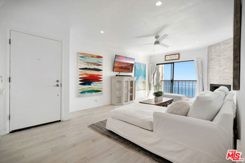 Welcome to Paradise! Your search has ended. Breathtaking oceanviews from this stunning, remodeled, top floor, spacious one bedroom, one bath condo in the front row of Tivoli Cove, D building, closest to the ocean. Fall asleep to the soothing sound of the waves and see the glorious sunrise and Catalina from your king size bed in the morning! View the Queen's necklace at night and marvel at the vast amount of stars in the sky. Sit by your cozy gas burning fireplace in the living room or relax on your sun drenched balcony with white water views. Coastal kitchen with stainless steel appliances and jaw dropping views of the ocean! Dedicated dining area accommodating seating for six. Gorgeous white, weathered ceramic wide plank flooring. Inviting glass enclosed marble shower. Ceiling fans in living room and bedroom add to the seaside breezes. Enjoy long beach walks to fabulous Paradise Cove or hit the surf at Latigo. Steps to a private beach with oceanfront BBQ's, picnic tables and volleyball net. Additional large bonus room just across walkway from the unit with wifi. Two side by side parking spaces. Gated and guarded community with onsite manager five days a week. Resort style living at it's finest with two tennis courts, heated pool, large spa, gym, sauna, and clubhouse with fireplace. Three miles from Pepperdine University and world class shopping, dining, and hiking near by. No Airbnb's permitted. Live the dream in Malibu now.