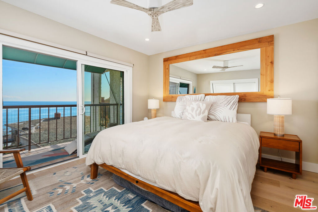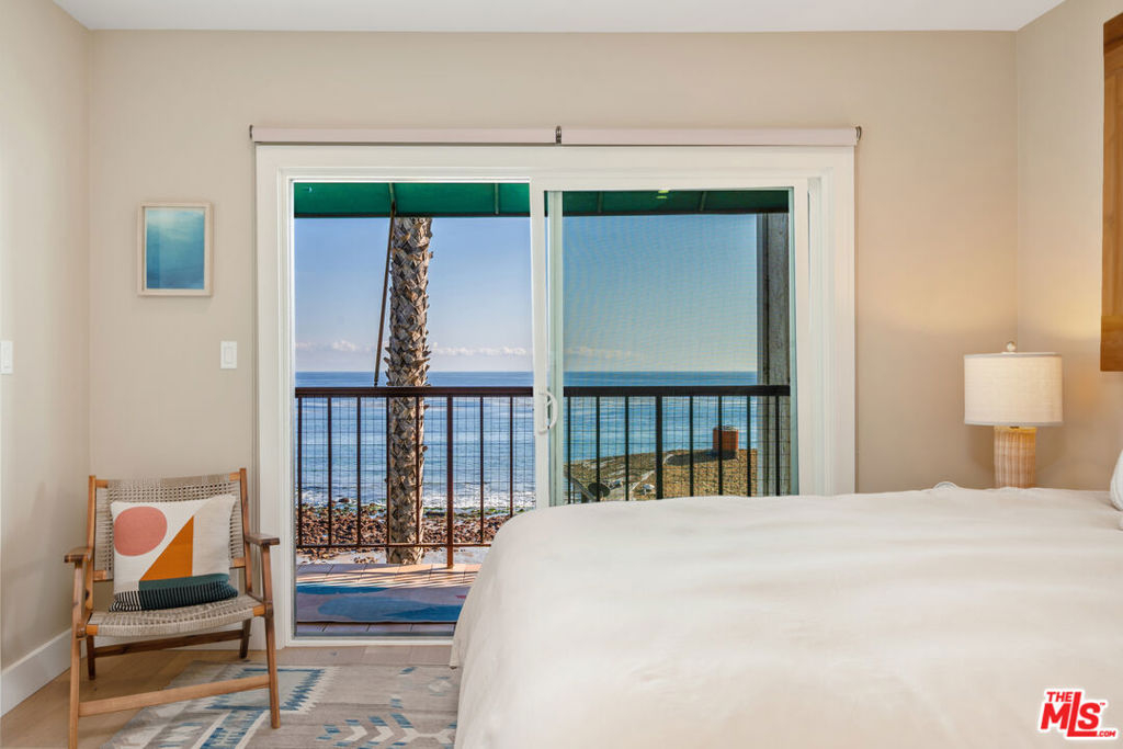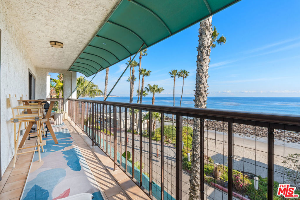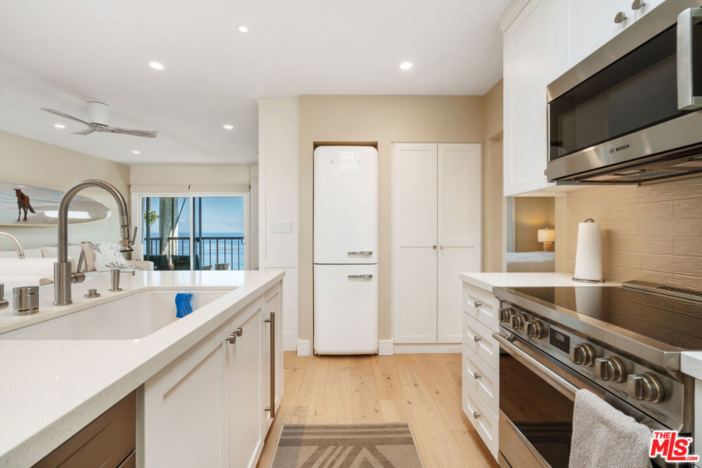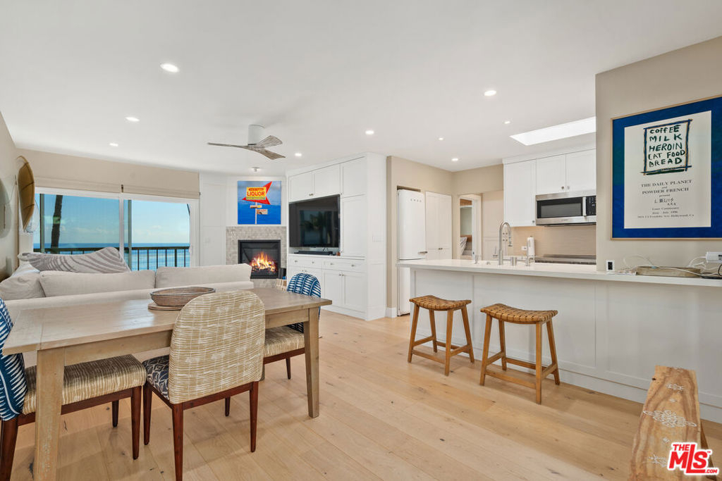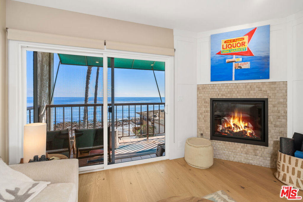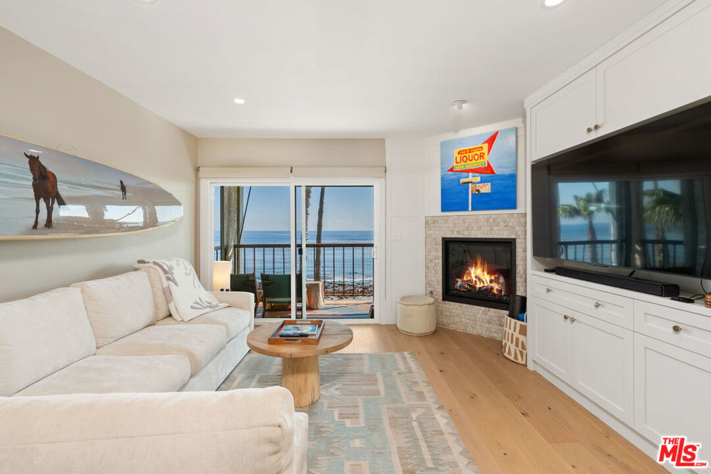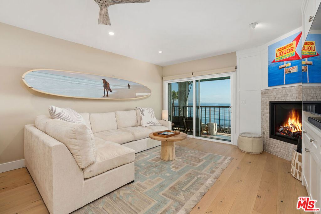 Breathtaking ocean views from your tranquil beach oasis. Step into your slice of heaven in this totally remodeled one bedroom, one bath condominium with an additional remodeled bonus room. A cozy fireplace adorns the spacious living room boasting heated engineered hardwood flooring and amazing views of the whitewater. Open, bright kitchen with skylight, Smeg Italian range and refrigerator, water purification system with instant hot water and built in Scotsman ice maker. Awaken in your sundrenched primary bedroom with stunning sunrise views and fall asleep to the gentle sound of waves rolling in. Roomy bathroom with an oversized shower, Icera bidet toilet, and high end fixtures. Designer ceiling fans add to the ocean breezes in your private oasis by the sea. Totally remodeled bonus room steps away with built in desk and storage closets. Resort style living at its finest with two tennis courts, heated pool, spa, gym, sauna and private beach with BBQ's and picnic tables. Excellent surf spot too! Rare opportunity to purchase an oceanfront condo at Tivoli Cove. Live the Dream in Malibu now.