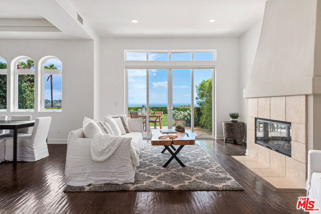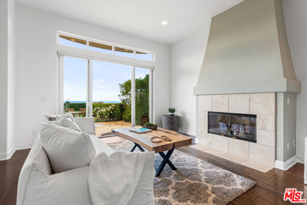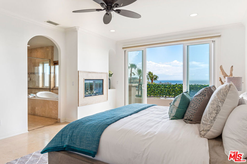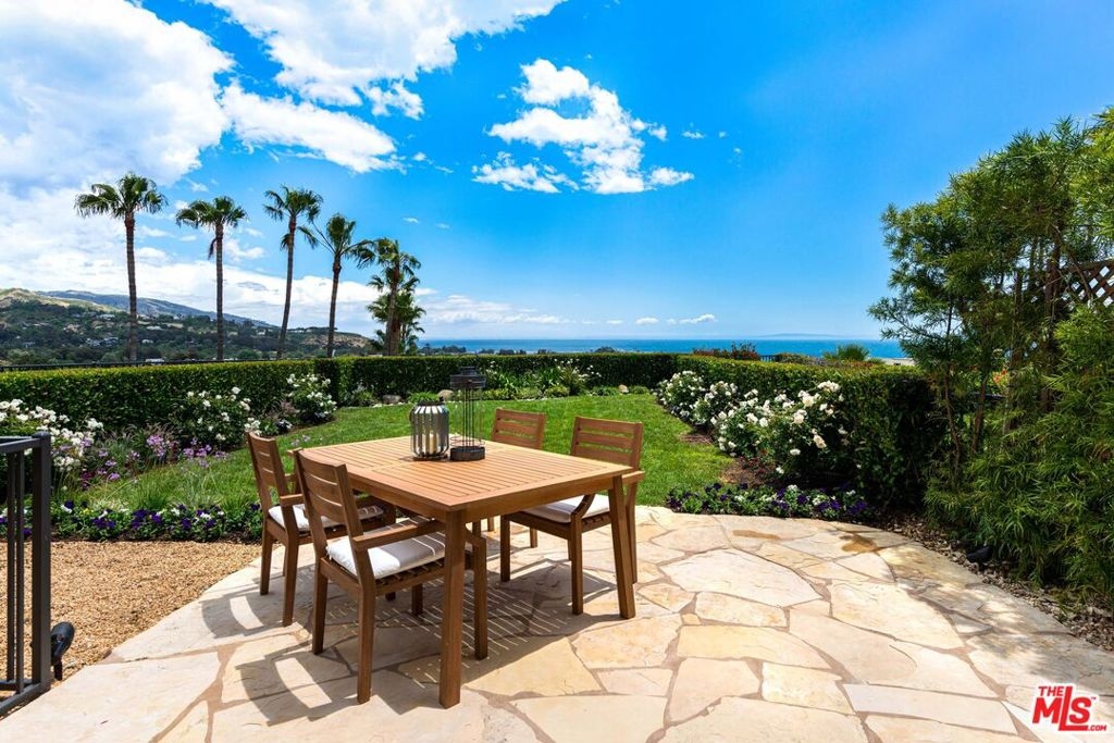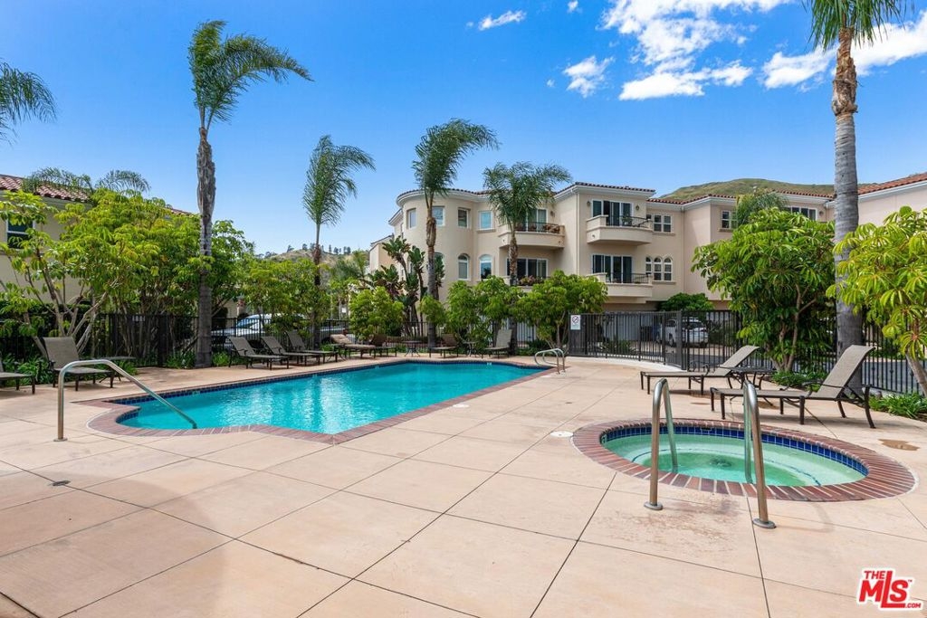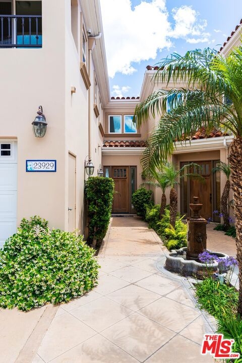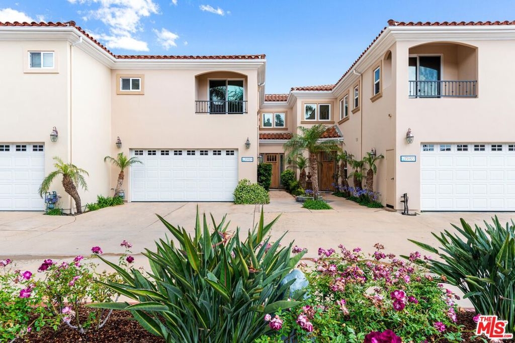 The Toscana complex of Malibu, where Mediterranean charm meets luxurious coastal living. This spacious townhome offers breathtaking ocean views stretching from the Malibu Civic Center to Santa Monica Bay. Upon entering, you are greeted by a serene fountain walkway, vaulted ceilings, and complete with a private yard that showcases panoramic vistas of the sparkling Pacific. The open-plan layout features coffered ceilings, complemented by rich wood and travertine floors that enhance the home's Mediterranean character. The focal point is the ocean-view family room, just two steps down from the main level, seamlessly connected to the chef's kitchen adorned with granite countertops and Viking appliances. Adjacent is a chandelier-lit dining area and a living room warmed by a fireplace, offering expansive views of both the ocean and mountains. Large windows and French doors open onto a flagstone patio and landscaped yard, extending your living space outdoors with vistas that span from downtown Malibu to Catalina Island. Ascend the curved staircase, the residence features three bedrooms, including an ocean-view primary suite that epitomizes luxury living. This sanctuary includes a spacious closet, a private oceanview deck, and a two-sided fireplace that graces both the bedroom and the opulent primary bath suite. For convenience, the unit includes a two-car garage and two additional parking spaces in front, along with guest parking available within the complex. Residents also enjoy access to exclusive amenities such as a community pool, spa, clubhouse with a fitness room, and meticulously landscaped grounds that enhance the serene coastal lifestyle. Experience the pinnacle of Malibu living in this Mediterranean townhome at Toscana, where every detail speaks of luxury, comfort, and unparalleled ocean views.
