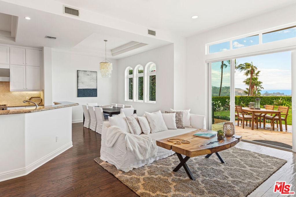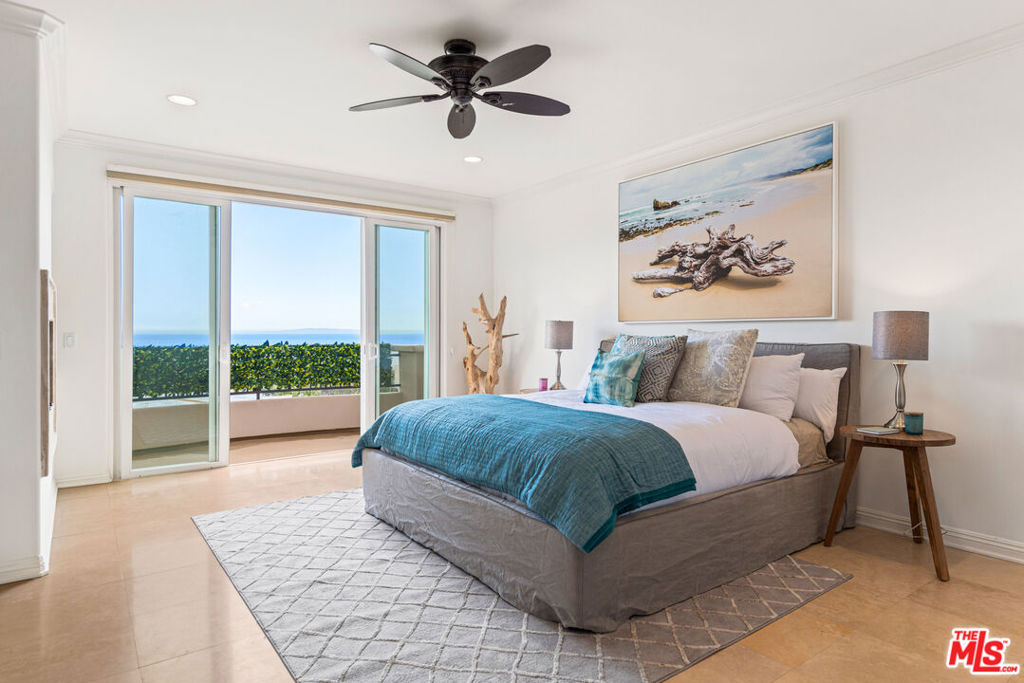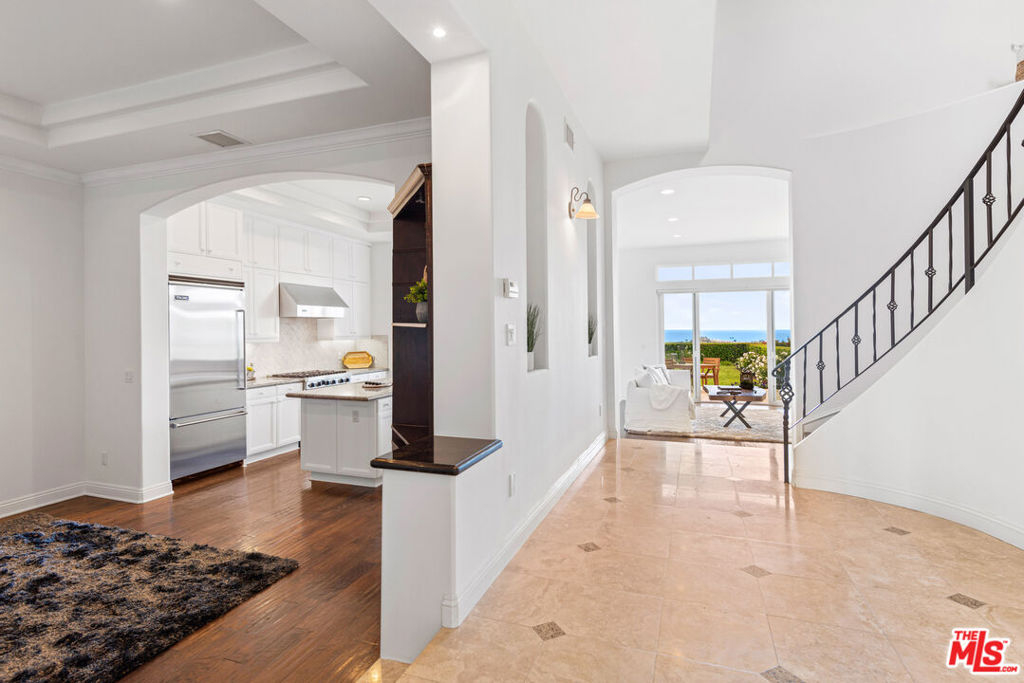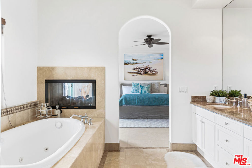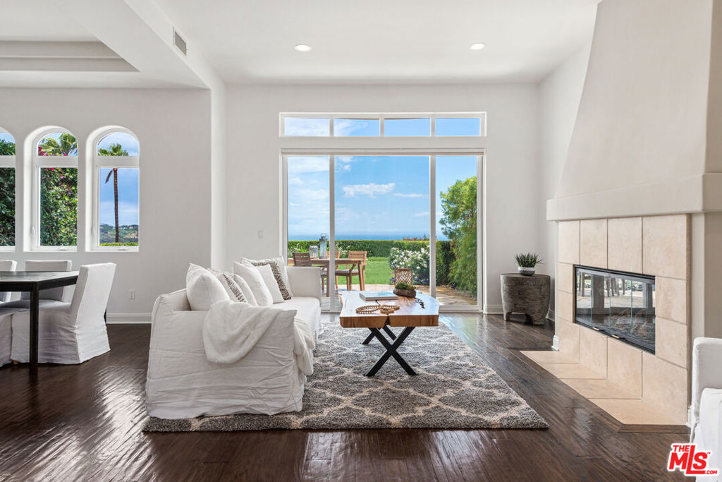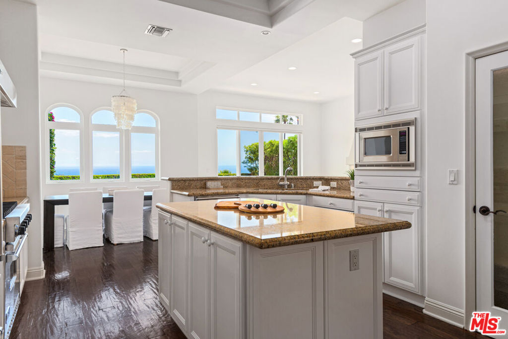 The Toscana complex of Malibu, where Mediterranean charm meets luxurious coastal living. This spacious townhome offers breathtaking ocean views stretching from the Malibu Civic Center to Santa Monica Bay. Upon entering, you are greeted by a serene fountain walkway, vaulted ceilings, and complete with a private yard that showcases panoramic vistas of the sparkling Pacific. The open-plan layout features coffered ceilings, complemented by rich wood and travertine floors that enhance the home's Mediterranean character. The focal point is the ocean-view family room, just two steps down from the main level, seamlessly connected to the chef's kitchen adorned with granite countertops and Viking appliances. Adjacent is a chandelier-lit dining area and a living room warmed by a fireplace, offering expansive views of both the ocean and mountains. Large windows and French doors open onto a flagstone patio and landscaped yard, extending your living space outdoors with vistas that span from downtown Malibu to Catalina Island. Ascend the curved staircase, the residence features three bedrooms, including an ocean-view primary suite that epitomizes luxury living. This sanctuary includes a spacious closet, a private oceanview deck, and a two-sided fireplace that graces both the bedroom and the opulent primary bath suite. For convenience, the unit includes a two-car garage and two additional parking spaces in front, along with guest parking available within the complex. Residents also enjoy access to exclusive amenities such as a community pool, spa, clubhouse with a fitness room, and meticulously landscaped grounds that enhance the serene coastal lifestyle. Experience the pinnacle of Malibu living in this Mediterranean townhome at Toscana, where every detail speaks of luxury, comfort, and unparalleled ocean views.