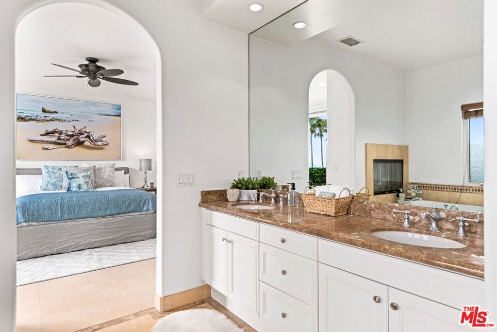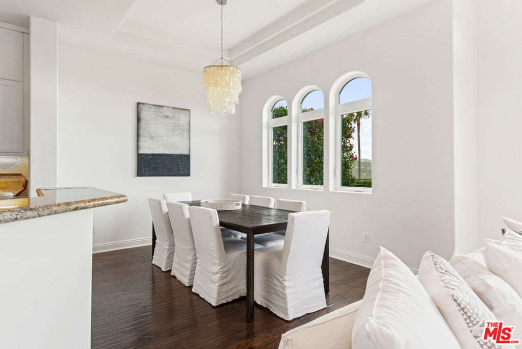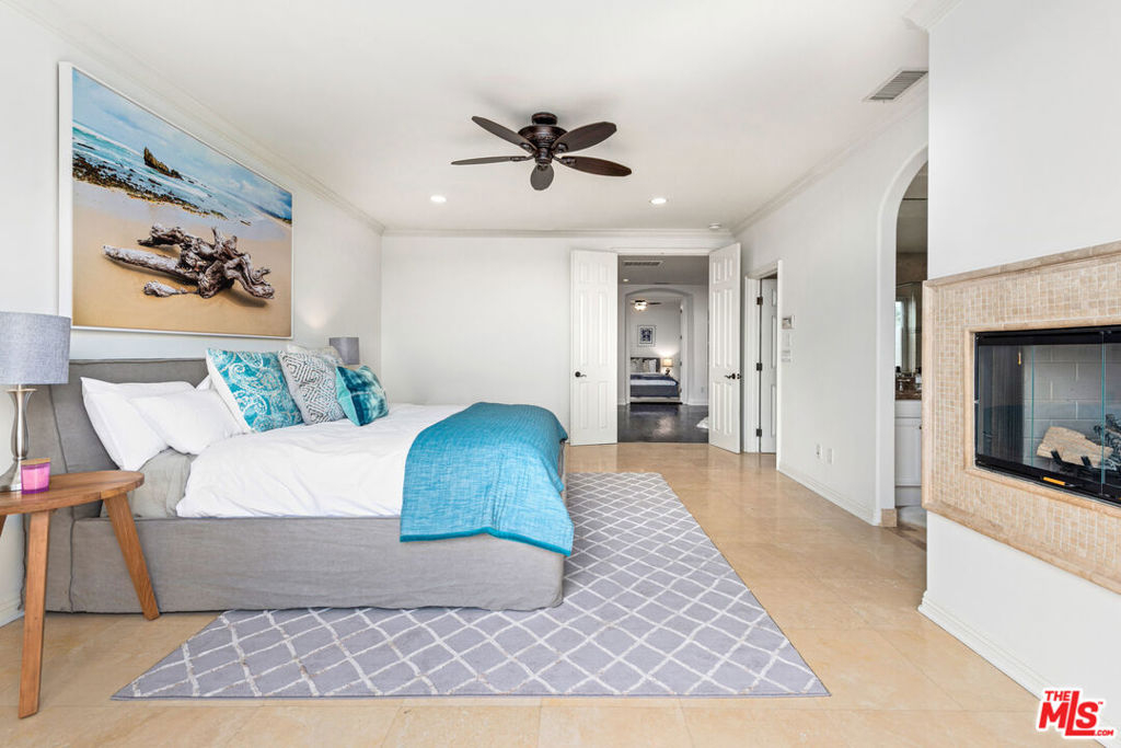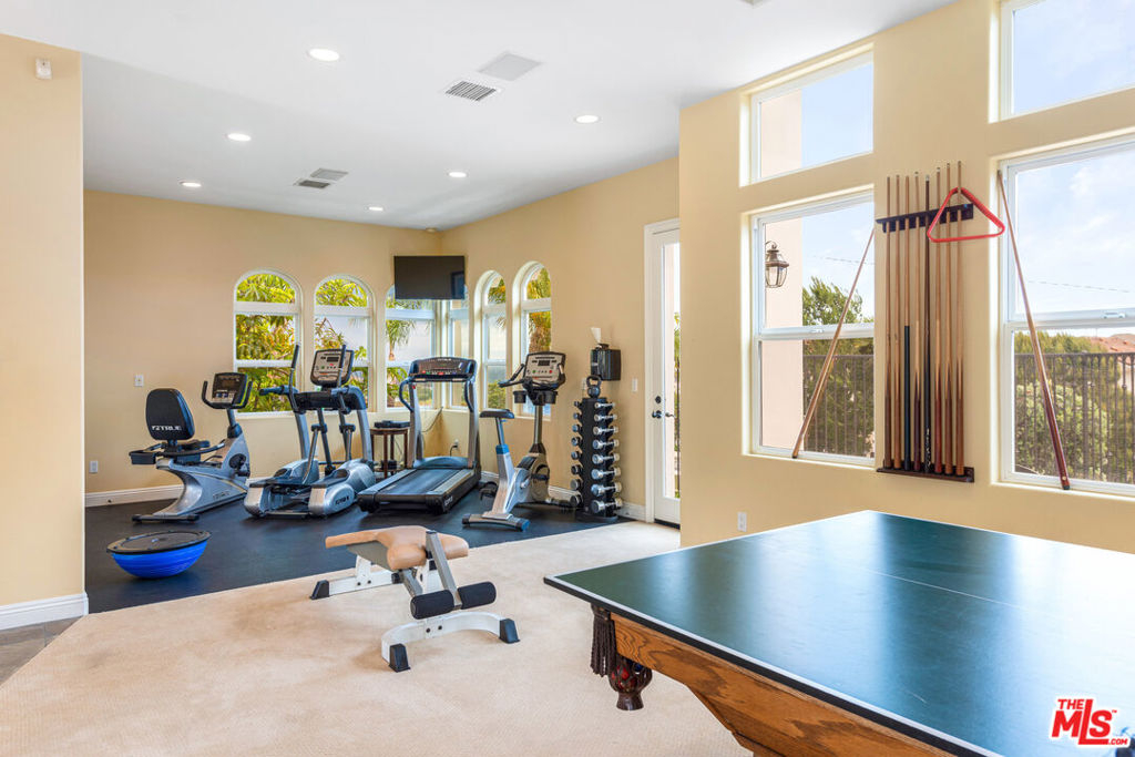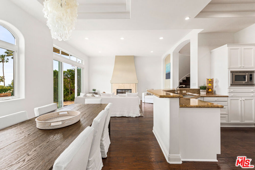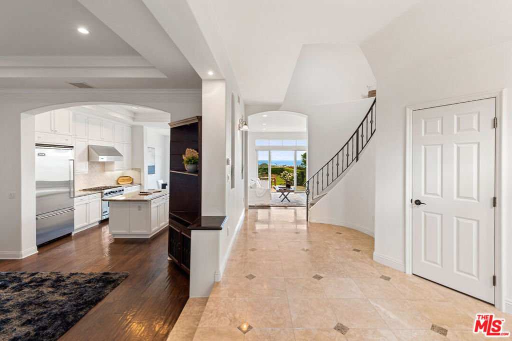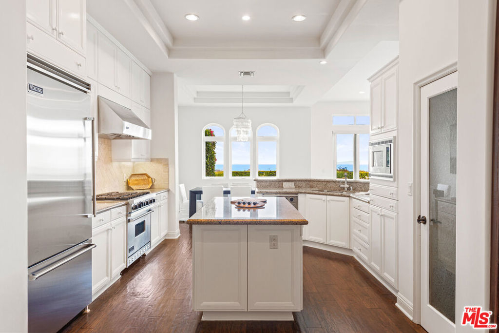 The Toscana complex of Malibu, where Mediterranean charm meets luxurious coastal living. This spacious townhome offers breathtaking ocean views stretching from the Malibu Civic Center to Santa Monica Bay. Upon entering, you are greeted by a serene fountain walkway, vaulted ceilings, and complete with a private yard that showcases panoramic vistas of the sparkling Pacific. The open-plan layout features coffered ceilings, complemented by rich wood and travertine floors that enhance the home's Mediterranean character. The focal point is the ocean-view family room, just two steps down from the main level, seamlessly connected to the chef's kitchen adorned with granite countertops and Viking appliances. Adjacent is a chandelier-lit dining area and a living room warmed by a fireplace, offering expansive views of both the ocean and mountains. Large windows and French doors open onto a flagstone patio and landscaped yard, extending your living space outdoors with vistas that span from downtown Malibu to Catalina Island. Ascend the curved staircase, the residence features three bedrooms, including an ocean-view primary suite that epitomizes luxury living. This sanctuary includes a spacious closet, a private oceanview deck, and a two-sided fireplace that graces both the bedroom and the opulent primary bath suite. For convenience, the unit includes a two-car garage and two additional parking spaces in front, along with guest parking available within the complex. Residents also enjoy access to exclusive amenities such as a community pool, spa, clubhouse with a fitness room, and meticulously landscaped grounds that enhance the serene coastal lifestyle. Experience the pinnacle of Malibu living in this Mediterranean townhome at Toscana, where every detail speaks of luxury, comfort, and unparalleled ocean views.