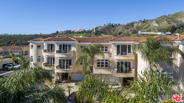 This elegant townhouse is offered for the first time in Toscana, an exclusive gated community located in the heart and urban center of Malibu. Enjoy ocean views and natural light filling the open and modern floor plan featuring high ceilings, custom designer finishes and hardwood floors throughout. The living room is spacious yet intimate, its fireplace elegant and the balcony offers cool ocean breezes. The open kitchen offers stainless steel appliances, a breakfast bar and center island with wine storage. A spacious den opens to a beautifully landscaped private courtyard with lush outdoor patio and lawn area. The master bedroom is romantic, highlighting ocean views and twinkling city lights, an outdoor balcony and a fireplace that opens also into the master bath. The guest bedroom and outdoor balcony enjoy peaceful views of Malibu Canyon. Coveted private parking on your own driveway for four cars plus two-car garage. This gated community consisting of 22 townhouses.