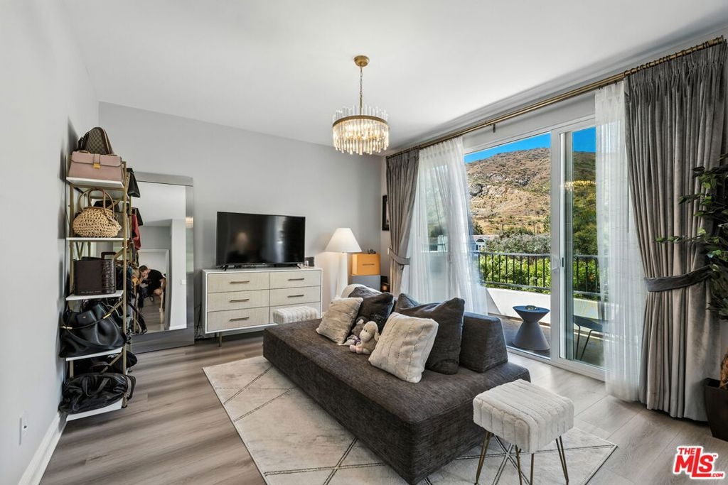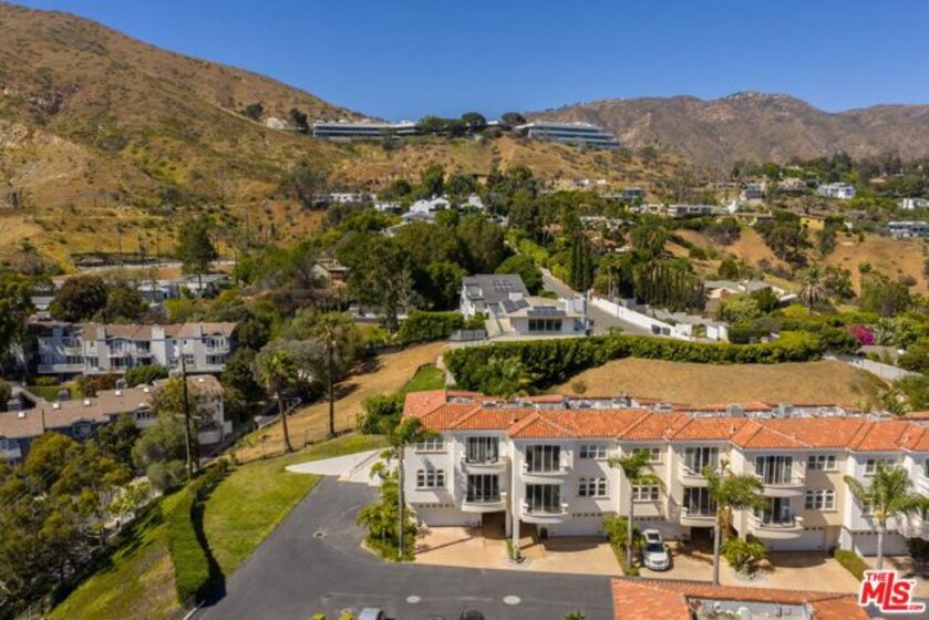 Exquisite, spacious and remodeled END UNIT townhome that gracefully faces the serene green belt, with beautiful wide-open views from every space. Nestled within Toscana, one of Malibu's most coveted gated communities. This contemporary 2-bedroom, 3-bath residence boasts an abundance of natural light, spacious rooms, open-concept living and dining areas, perfect for entertaining or relaxing in style. The sophisticated chef's kitchen features a generous center island, Viking range, pantry, breakfast bar seating that flows seamlessly into a cozy family room, which opens to a private outdoor patio, one of the largest in the entire complex. Main living room area has beautiful end unit views, a large patio and private grassy yard. Ascend to the upper level, where you'll find a welcoming guest room and bath, a convenient laundry room along with a versatile bonus office/den area. The crowning jewel is the ocean view primary suite, complete with a delightful balcony, a spa-like bathroom showcasing a rejuvenating jacuzzi tub, glass enclosed shower, double-sided fireplace and a sizable walk-in closet for all your luxury needs. With soaring high ceilings and skylights, this home exudes elegance and warmth. There is an attached two car garage with storage. Residents of Toscana enjoy a wealth of community amenities, including a sparkling pool, recreation center and gym, all just a stone's throw from the vibrant offerings of Pepperdine University, Malibu Racquet Club, fine dining, trendy shops, Whole foods, hiking trails and beaches. Embrace the Malibu lifestyle that awaits you in this desirable gem of a community.