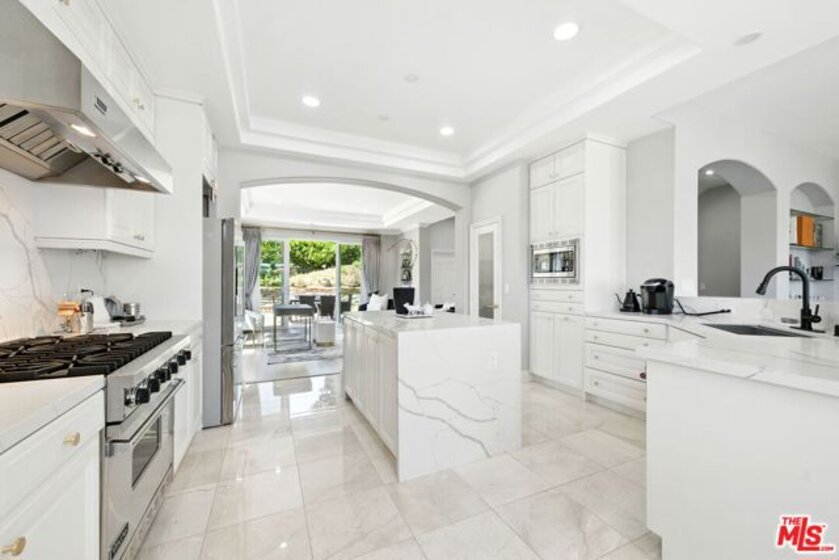 END UNIT! Exquisite remodel with beautiful wide-open views from every room and abundant natural light throughout. Nestled within Toscana, one of Malibu's most coveted gated communities. This contemporary 2-bedroom, 3-bath residence boasts spacious rooms, open-concept living and dining areas, perfect for entertaining or relaxing in style. The sophisticated chef's kitchen features a generous center island, Viking range, pantry, breakfast bar seating that flows seamlessly into a cozy family room, which opens to a private outdoor patio, one of the largest in the entire complex. Main living room area has beautiful end unit views, a large patio and private grassy yard. Ascend to the upper level, where you'll find a welcoming guest room and bath, a convenient laundry room along with a versatile bonus office/den area. The crowning jewel is the ocean view primary suite, complete with a delightful balcony, a spa-like bathroom showcasing a rejuvenating jacuzzi tub, glass enclosed shower, double-sided fireplace and a sizable walk-in closet for all your luxury needs. With soaring high ceilings and skylights, this home exudes elegance and warmth. There is an attached two car garage with storage. Residents of Toscana enjoy a wealth of community amenities, including a sparkling pool, recreation center and gym, all just a stone's throw from the vibrant offerings of Pepperdine University, Malibu Racquet Club, fine dining, trendy shops, Whole foods, hiking trails and beaches. Embrace the Malibu lifestyle that awaits you in this desirable gem of a community.
