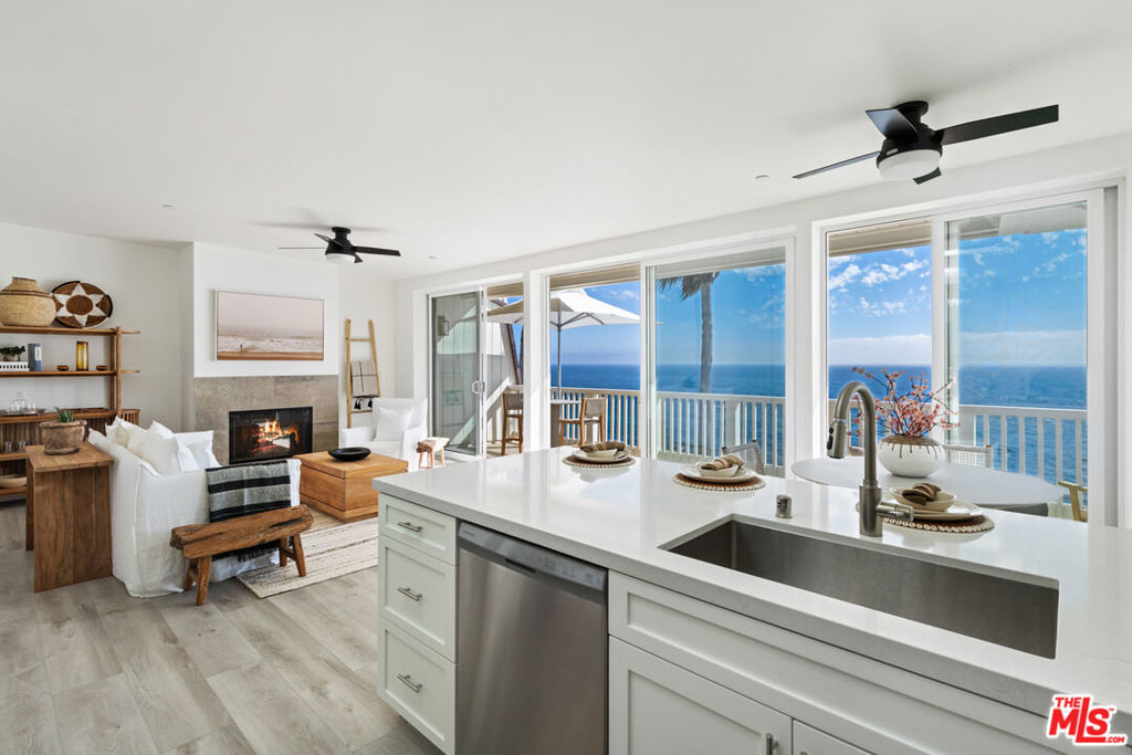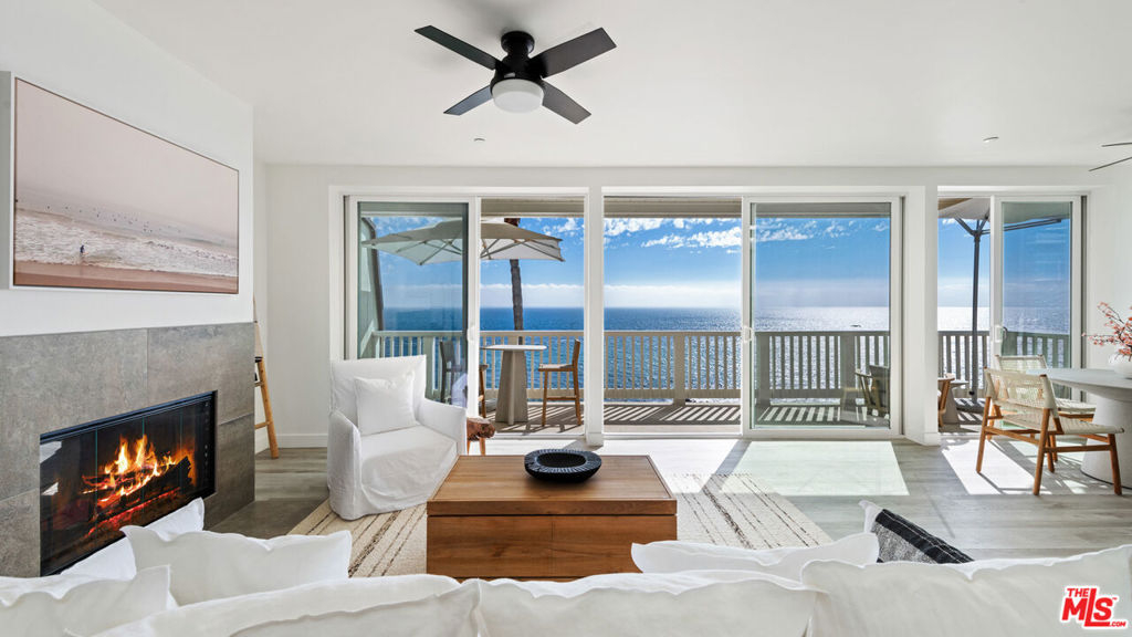 Brand new 2025 construction - Welcome to the Malibu Bay Club located on an oceanfront bluff offering an incredibly serene beach lifestyle. Known for its cove beaches and natural beauty, this property is an ocean lover's paradise, mere steps from the sand. Ebb Tide Lane is a penthouse corner unit offering endless ocean and coastline views. Argueably one of the best locations in the entire complex. Completely rebuilt from the ground up in 2024/2025 and drenched in natural light, this top floor unit features an open floor plan with high ceilings, large open kitchen, breakfast and dining area, living room with fireplace, skylights, walls of glass and sliding doors that open to an expansive deck. This unit is drenched in natural light and feels very private plus being at the end of the street plus you are right over the sandy beach below. Enjoy unobstructed coastline views of county line beach to the Channel Islands and located next to two of the local's favorite surf breaks! Private laundry, A/C, ceiling fans, solar panels, beautiful fixtures and finishes throughout. 1 car carport plus 2 additional uncovered parking spaces which is unique to this unit and a few others. Don't miss this rare opportunity to own this premier penthouse corner unit in time for summer. The Malibu Bay Club is one of only a few beachfront complexes in Malibu. Gated with secured entry, beautiful pool area with spa and direct beach access to sandy coves. The community recently completed renovations to all the condo exteriors including new roofs, copper gutters, new exterior paint, tile and more.