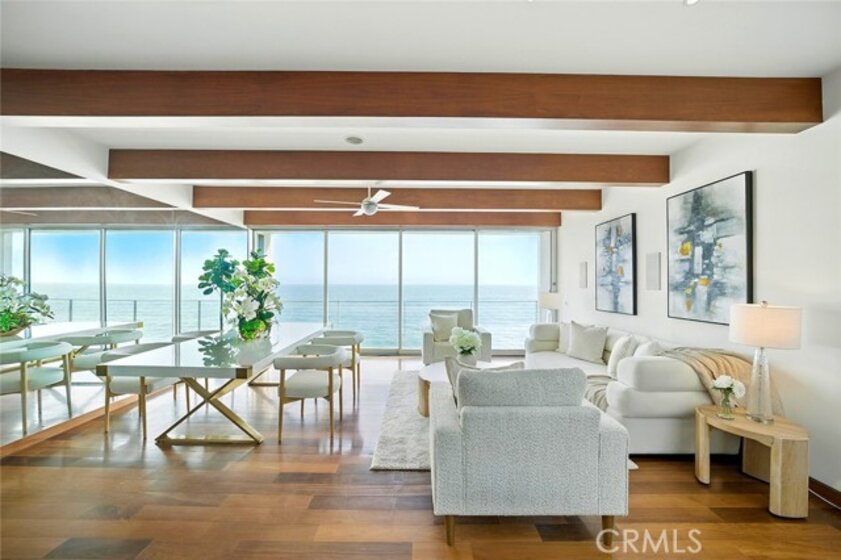 A sophisticated modern beachfront residence featuring upscale design and coastal living vibes. Nestled along a quiet stretch of coastline, this impeccably renovated two-bedroom, two-and-a-half bath beachfront property delivers unmatched coastal elegance and stands as a serene escape from the bustle of everyday life. Upper-level living area feels like floating over the ocean thanks to the expensive windows and panoramic views. Floor-to-ceiling windows frame sweeping views of the ocean, letting in golden sunlight that dances across the polished hardwood floors. With an open-concept layout, the spacious living room and kitchen flow seamlessly together, all set against a backdrop of jaw-dropping ocean views that stretch endlessly from nearly every room. Sleek, fully equipped cook’s dream kitchen is beautifully designed and functional. Lower level hosts the master suite and a secondary suite with its own kitchen, easy sand access. Additional features include two-car tandem covered parking, a private laundry closet, and direct access to all the amenities of the Malibu Bay Club, including a sparkling pool, relaxing spa, and two sports courts, for an active coastal lifestyle. Perfectly located just minutes from Pepperdine University, County Line Beach, and Leo Carrillo State Park. Whether for intimate living or seaside entertaining, this Malibu gem offers a uniquely immersive coastal lifestyle. It’s a place where time slows, and the ocean is your constant, calming companion.