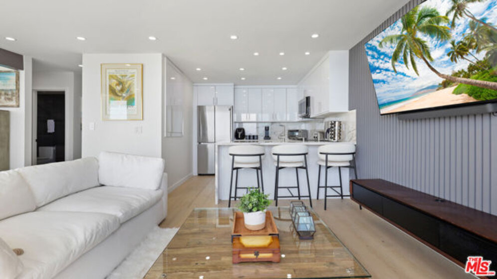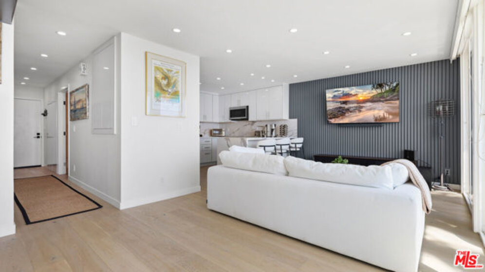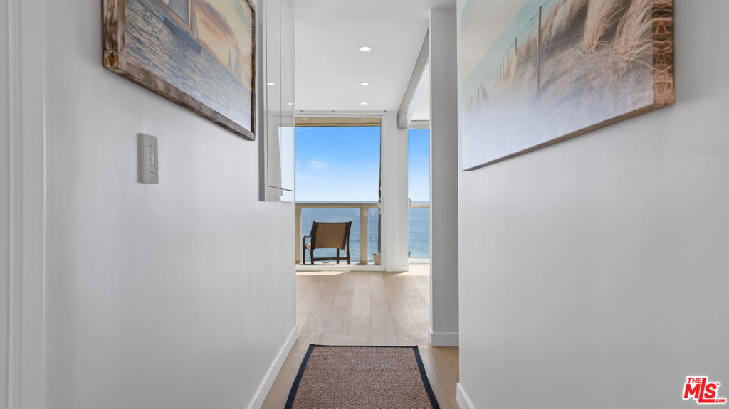 Commanding a premier position above the sand in Malibu's iconic Malibu Bay Club, this beautifully updated 2-bedroom, 3-bath oceanfront residence offers extraordinary views of the Pacific from both levels. Floor-to-ceiling glass opens to a private oceanfront terrace, creating a seamless indoor-outdoor experience and the feeling of floating above the water. The thoughtfully designed interior features wide-plank wood flooring, refined white cabinetry, stone countertops, and stainless steel appliances, all enhanced by abundant natural light. The open-concept layout is both elegant and functional, perfectly suited for relaxed coastal living and refined entertaining. Downstairs, two ocean-facing bedroom suites offer comfort and flexibility, each with updated ensuite baths and generous closet space. The secondary bedroom includes an adjoining office space, ideal for remote work or a quiet retreat, all set against a stunning coastal backdrop. Located within a gated community with a pool, spa, and direct beach access, this residence offers effortless Malibu living minutes from world-class surf, sandy beaches, and the shops and dining at Trancas Market.