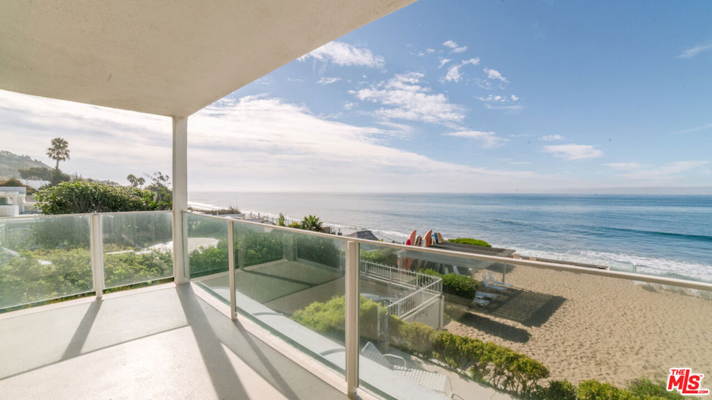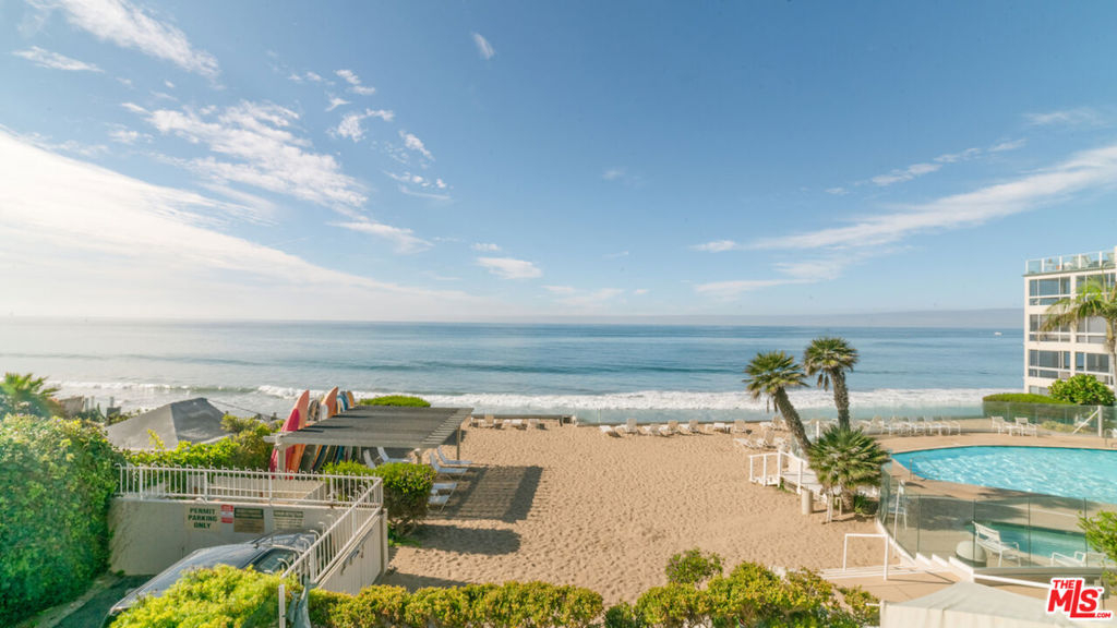 The best deal in Malibu. Nestled on the exclusive shores of Malibu's renowned Carbon Beach, the Malibu Outrigger stands as a testament to the enduring allure of Mid-Century Modern architecture. Its views offer breathtaking panoramas: from the stunning sunrise over the Santa Monica Bay to the beauty of moonlit nights, all culminating in the majestic sweep of the "Queen's Necklace" view, which gracefully spans from Santa Monica to Catalina Island. Positioned at the heart of luxury, its proximity to global icon Nobu, the stylish Soho House, and the emblematic Malibu Pier and Surfrider Beach embodies the pinnacle of resort-style living. This 2-bedroom, 2-bathroom haven sprawls across a generous 1,200 sq. ft., with a welcoming formal entry leading into a vast living and dining expanse crowned by a cozy fireplace. The seamless integration of expansive glass sliders reveals a covered balcony, setting the stage for awe-inspiring ocean views and the inviting beach and pool below.