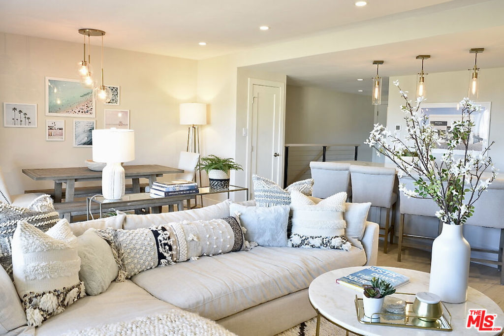 Discover the epitome of coastal elegance in this beautifully renovated 2-bedroom, 2-bathroom condo in prime central Malibu, offering breathtaking ocean views. Thoughtfully designed with upscale finishes and furnishings throughout, the residence blends modern comfort with effortless coastal living. The main level features an open-concept living room, family room, and modern kitchen with stainless steel appliances, along with an elegant dining area and cozy fireplace. Step out onto the expansive balcony to enjoy sweeping views of the ocean, mountains, and Malibu cityscape. The lower level hosts both the primary and guest bedrooms, each with captivating ocean views. The primary suite features a spacious walk-in closet and a luxurious bathroom with dual vanities, a shower, and a freestanding soaking tub. The guest bedroom offers comfort and style, creating an inviting retreat for visitors. This ground-floor unit overlooks central Malibu with direct sight lines to one of the world's most iconic surfing destinations. The community features a heated pool, spa, sauna, showers, and multiple seating areas surrounded by lush landscaped gardens and grassy lawns. A walking and bike path connects directly to Cross Creek, Malibu Country Mart, and the Lumberyard. Ideally located near Pepperdine University, Whole Foods, Malibu Pier, Nobu, Soho House, Malibu Canyon, world-class restaurants, hiking, shopping, and Malibu's renowned beaches.