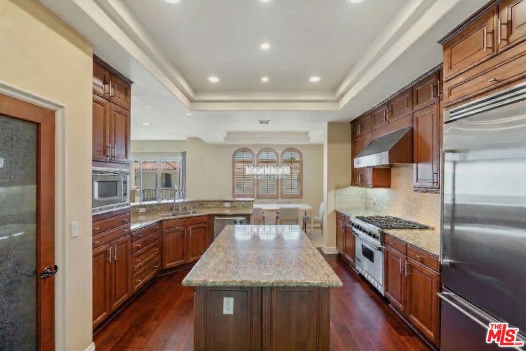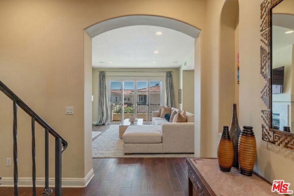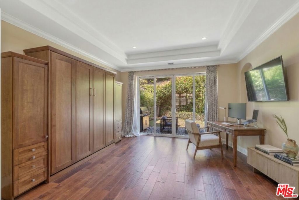 Welcome to coastal living in this beautifully upgraded 3-story townhome with ocean views, just minutes from Pepperdine and the beach. Ideal for those looking for space, privacy, and high-end amenities. The first floor offers a secure 2-car garage with overhead storage racks, built-in cabinetry, storage closets, and a whole-home Halo water filtration system. On the main level, enjoy an open-concept layout with soaring high ceilings and hardwood floors throughout. The formal living room features an elegant gas fireplace and balcony, while the dining room, breakfast bar, and chef's kitchen with Viking appliances, center island, pantry, and plenty of prep space make entertaining effortless. A bonus room currently set up as an office with a king size Murphy bed and closets can function as a third bedroom, guest room, or creative studio. It opens to a serene, fully fenced grassy yard - private, low-maintenance, and perfect for relaxing, gardening, or entertaining with a built-in gas line ready for a grill or firepit. A stylish guest bathroom and statement chandelier complete this floor. Upstairs, the primary suite offers sweeping ocean views from every window - including the bedroom, bathroom, shower, and soaking tub - plus a cozy gas fireplace, private balcony, and massive walk-in closet. The second bedroom has its own bath and balcony with mountain views. Luxurious travertine tile in the bathrooms adds a timeless, spa-like touch. A sunlit upstairs office with skylight and an in-unit laundry room with a sink and ample storage complete the top floor. Dual-zone A/C and heating systems allow for independent climate control on each floor, ensuring personalized comfort year-round. Smart Nest thermostats let you control the temperature remotely, and the home is pre-wired for ADT security for added peace of mind. Flexible layout, ocean views, multiple outdoor spaces, and top-tier finishes make this home a standout. Located in the exclusive 22-unit gated community of Toscana, residents enjoy access to a clubhouse, fitness center, heated pool and spa, beautifully landscaped grounds, security, and controlled entry. A pedestrian and bike path provides convenient access to Malibu Country Mart, Surf Canyon, Cross Creek Ranch, Bluffs Park, Malibu beaches, and Pepperdine. Don't miss your chance to live the Malibu lifestyle and unbeatable proximity to Malibu's best amenities.