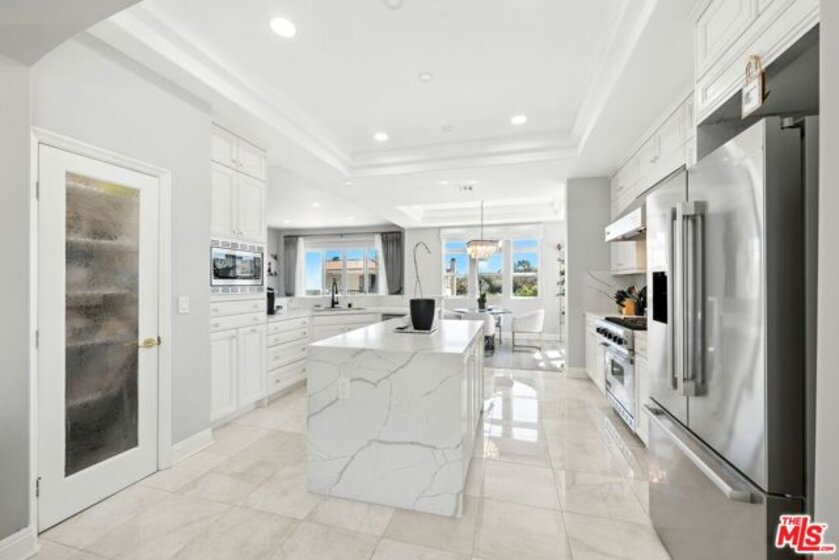 END UNIT! Exquisite remodel with beautiful wide-open views from every room and abundant natural light throughout. Nestled within Toscana, one of Malibu's most coveted gated communities. This contemporary 2-bedroom, 3-bath residence boasts spacious rooms, open-concept living and dining areas, perfect for entertaining or relaxing in style. The sophisticated chef's kitchen features a generous center island, Viking range, pantry, breakfast bar seating that flows seamlessly into a cozy family room, which opens to a private outdoor patio, one of the largest in the entire complex. Main living room area has beautiful end unit views, a large patio and private grassy yard. Ascend to the upper level, where you'll find a welcoming guest room and bath, a convenient laundry room along with a versatile bonus office/den area. The crowning jewel is the ocean view primary suite, complete with a delightful balcony, a spa-like bathroom showcasing a rejuvenating jacuzzi tub, glass enclosed shower, double-sided fireplace and a sizable walk-in closet for all your luxury needs. With soaring high ceilings and skylights, this home exudes elegance and warmth. There is an attached two car garage with storage. Residents of Toscana enjoy a wealth of community amenities, including a sparkling pool, recreation center and gym, all just a stone's throw from the vibrant offerings of Pepperdine University, Malibu Racquet Club, fine dining, trendy shops, Whole foods, hiking trails and beaches. Embrace the Malibu lifestyle that awaits you in this desirable gem of a community.