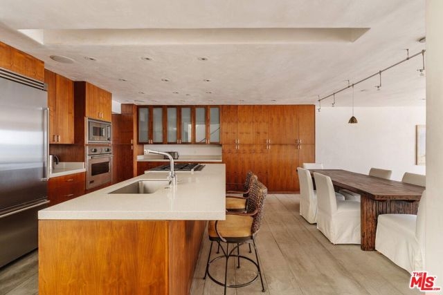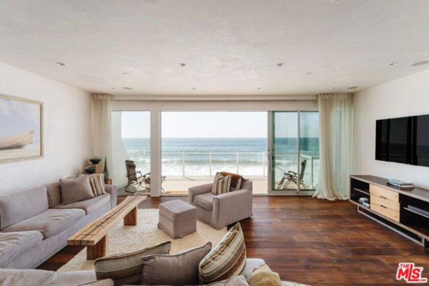 On a golden stretch of Malibu's iconic beach, where waves whisper secrets and the horizon stretch endlessly, stands a rare architectural gem, once the serene retreat of legendary filmmaker Robert Altman. This New York loft-style townhome offers two stories of timeless elegance and coastal sophistication. This 3-bedroom, 2.5-bath residence is one of the largest townhomes on this coveted stretch of Malibu Road. With a gated entrance, 2 side-by-side attached private garage, and central heating and cooling, comfort and convenience are paramount. Step into the airy primary suite where skylights invite the morning sun and a private large terrace frames sweeping ocean views. Downstairs, expansive living spaces with soaring ceilings flow effortlessly onto another oceanfront deck, your direct gateway to the sand. Two fireplaces, one in the living room and one in the primary bedroom, add warmth and charm, while built-ins and generous closets offer thoughtful storage throughout. The home also features hardwood, concrete, and tile flooring, and comes equipped with premium appliances including a washer/dryer, refrigerator, range/oven, and more. Located in the exclusive Oceanis complex with only four units, this lightly lived-in haven offers privacy, prestige, and the rare opportunity to live directly on the sand. Whether you're seeking a peaceful escape or a vibrant beachside lifestyle, this home is ready for its next chapter, yours to write.
