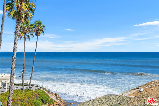 Breathtaking oceanviews from this totally remodeled, spacious one bedroom, one bath condo in the front row of Tivoli Cove. Fall asleep to the soothing sound of waves and see the glorious sunrise from your bed in the morning! Enjoy long beach walks to fabulous Paradise Cove. Steps to secluded beach. Fabulous views of the Queen's necklace and Catalina. Sit by the cozy fireplace in the living room and relax on the sun drenched large balcony with whitewater views. Additional large bonus room just across from the unit with wifi. Resort style living at it's finest with two tennis courts, heated pool, large spa, gym, sauna, and bbq's on the beach! Three miles from Pepperdine University and fabulous shopping and dining. Live the dream!