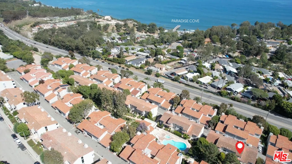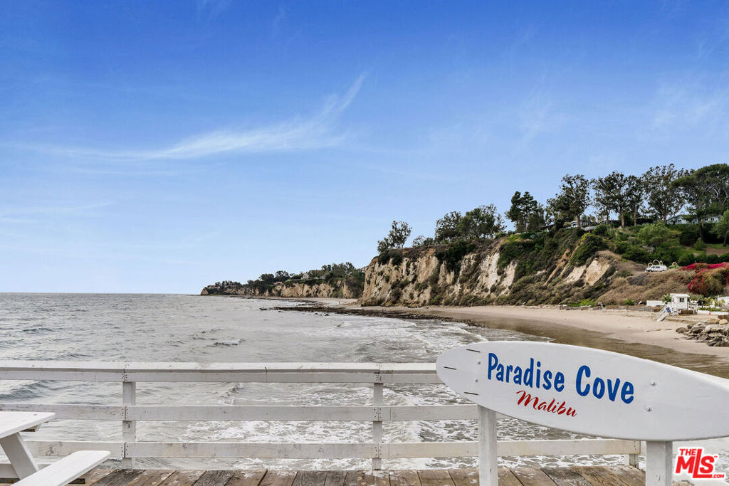 Experience the quintessential coastal lifestyle in this beautifully updated Malibu residence. This sun-drenched townhome is defined by soaring ceilings, an abundance of natural light, and elegant finishes, including plantation shutters and hardwood flooring throughout. The main level welcomes you with an airy, open-concept living and dining area centered around a beautiful fireplace. Step out onto the private balcony to take in the ocean breezes and peekaboo ocean views. The heart of the home is an expanded, modern kitchen featuring ample cabinetry, generous counter space, a convenient breakfast bar, and updated appliances. The lower-level primary retreat is a spacious sanctuary, complete with its own private balcony and a large walk-in closet. The en-suite bathroom offers a dual-sink vanity, a separate soaking tub, and an oversized shower. A second well-appointed bedroom also features an en-suite bath and opens directly to a peaceful, private patio. Upstairs, a versatile loft with a full bathroom and two closets overlooks the main floor, serving perfectly as a home office or a third bedroom. Practical amenities include an attached two-car garage equipped with a laundry area, generous storage areas and shelving. Residents of this community enjoy access to a pool, spa, sauna and clubhouse, with the added luxury of direct access to Paradise Cove Beach just across the street. Perfectly situated near Point Dume Plaza, the Malibu Country Mart, and world-class beaches like Zuma and Westward, this home offers incredible value and the rare opportunity to live the dream in one of Southern California's most iconic locations.