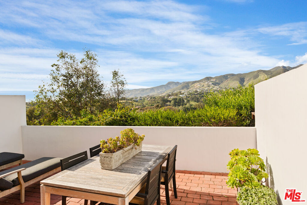 Newly updated ocean-view townhome with coveted Riviera III beach rights to Little Dume, the most private and idyllic sandy beach in all of Malibu! Situated in the outermost row of a gated complex, this rare property offers a gateway to the quintessential coastal lifestyle with sweeping mountain and ocean views. Inside, the home is flooded with natural light by an abundance of large skylights and offers a casual layout with exceptionally large square footage. The living room features high beamed ceilings, oversized windows with mountain views, and an Italian fireplace. The kitchen flows to a dining area and out onto a private sun-drenched patio, with endless views from Zuma to Buzzards Roost and beyond. Upstairs, the primary suite offers soaring ceilings with a private balcony, en-suite bathroom, and updated walk-in closet. The second bedroom features peaceful views and there is an additional full bathroom, entry level powder room, and a large loft that could be used as an office, media room, or converted to a third bedroom. An attached two-car garage offers ample storage and a washer/dryer. Point Dume is one of Malibu's most iconic locations, and this townhome is ideally situated next to the shops and restaurants at Point Dume Village. Take your golf cart to Little Dume and enjoy the finest beach that Malibu has to offer, with sandy coves and gentle waves sheltered from the afternoon wind making it a private paradise.