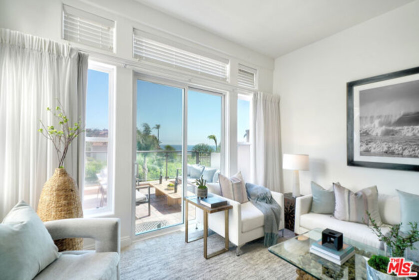 Enjoy stunning ocean views every time you come home! Look out past the greenery of the garden to the sea beyond and your soul will be soothed. Enjoy all the attributes of this newly spruced up townhouse in the upscale community of Vista Pacifica at Broad Beach. The townhome boasts high ceilings, an open floor plan, and the spacious feeling that everyone wants. Stone and wood flooring throughout, there's a fireplace in the living room and in the primary bedroom. There are two ocean view decks on both floors, vaulted ceilings, a marvelous walk-in closet and both bedrooms' bathrooms have a separate tub and shower. The community offers a pool, an exercise room and gated access. Close to restaurants, markets and beautiful beaches - This fabulous townhouse awaits!
