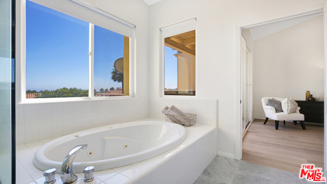 Prime location, The Pointe at Malibu. European White Oak flooring craftsmen installed, simply beautiful. Ocean view from the master bedroom suite, w/ dual sinks, Carrara marble floor, separate shower & jetted tub, walk-in closet. A resort like pool ,spa, exercise room, and tennis court. Famous Paradise Cove is just south on PCH. Kitchen with Sub Zero refrigerator, granite counters, Viking stove, breakfast bar, open to breakfast and family area, window bench, & patio /bbq outdoor living area. Other features: 2 car direct entrance private garage, balconies, high ceilings, lots of storage, separate laundry area, air conditioning, gated community.