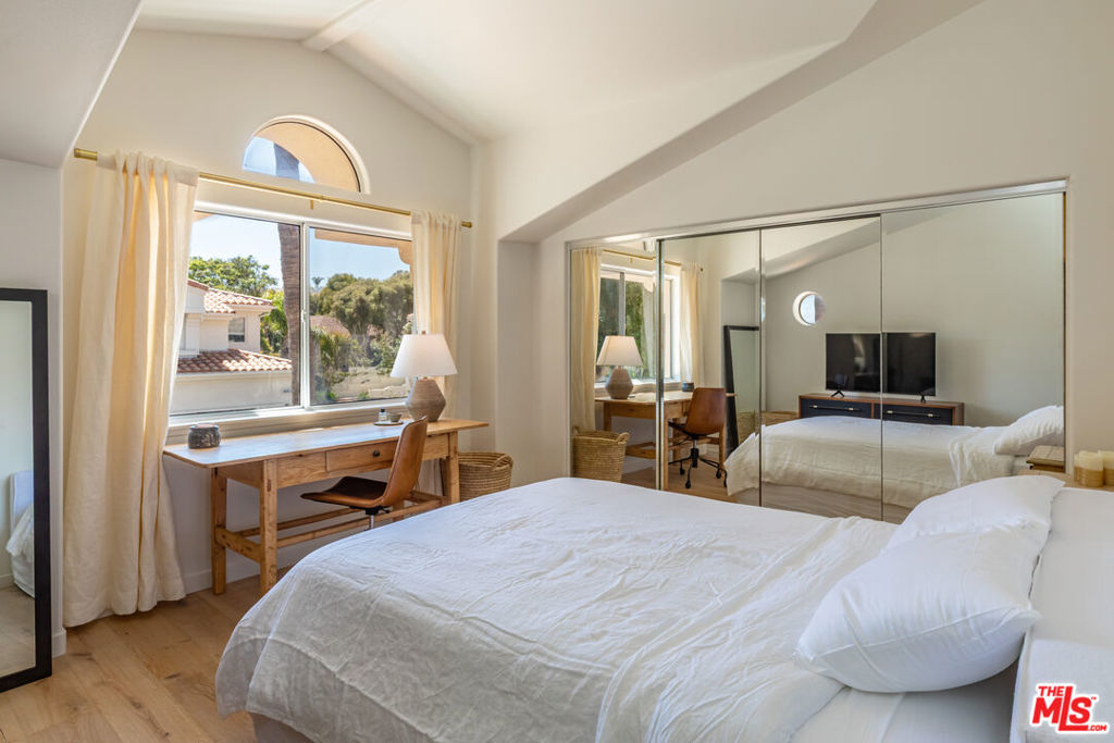 Tucked behind the gates of The Pointe at Malibu, this beautifully reimagined 2-bedroom, 2.5-bath townhome offers elevated coastal living just moments from Zuma Beach. Worthy of an Architectural Digest spread - thoughtful design and custom finishes define the space, featuring soaring ceilings, wide-plank oak floors, and arched windows that bathe the home in natural light. The chef's kitchen features quartz countertops, brass hardware, and stainless appliances, opening seamlessly into a warm and inviting dining and living area anchored by a fireplace and private patio. Each bathroom is distinct and luxurious, from the Venetian plaster bathrooms to the spa-like primary bath with soaking tub and marble finishes. The primary suite includes vaulted ceilings, a private balcony, and a custom walk-in closet. With a two-car garage, in-unit laundry, and access to resort-style amenities including a pool, spa, gym, and tennis court, this turnkey Malibu retreat pairs refined design with effortless California living.