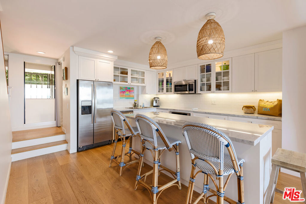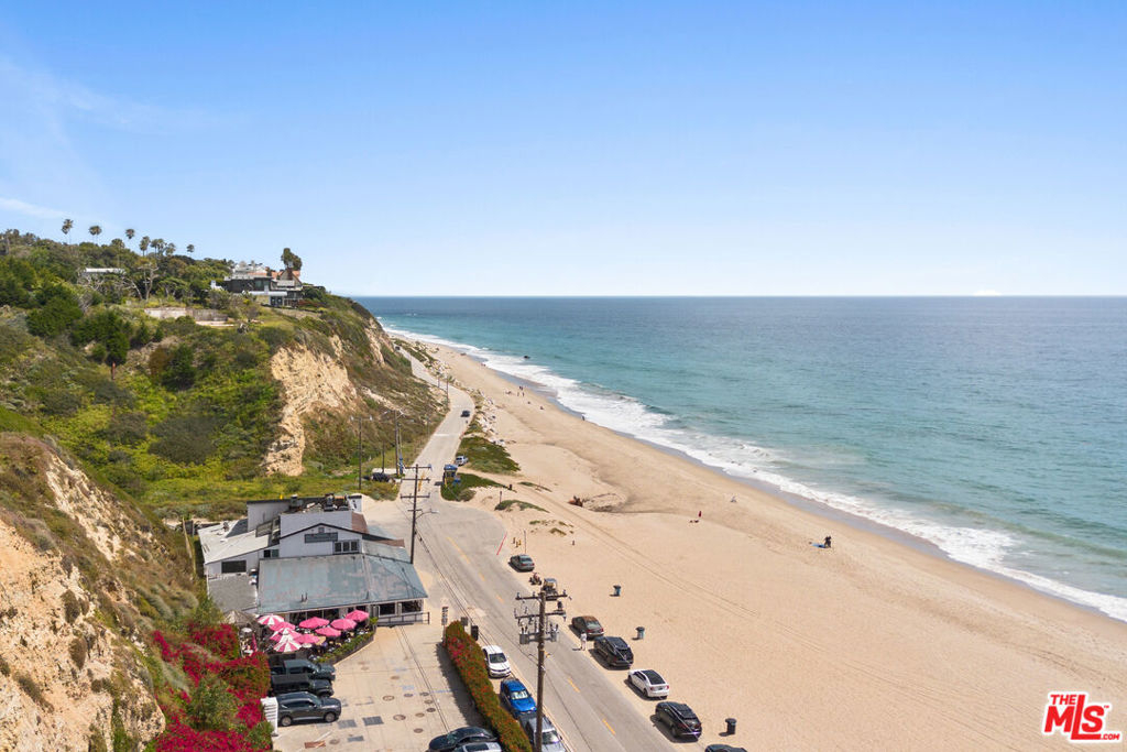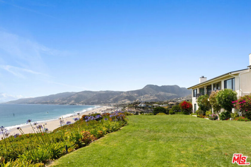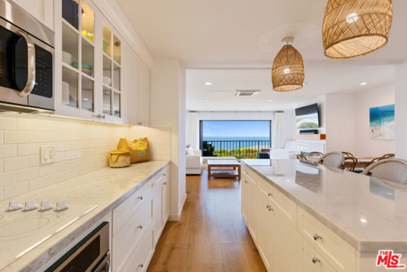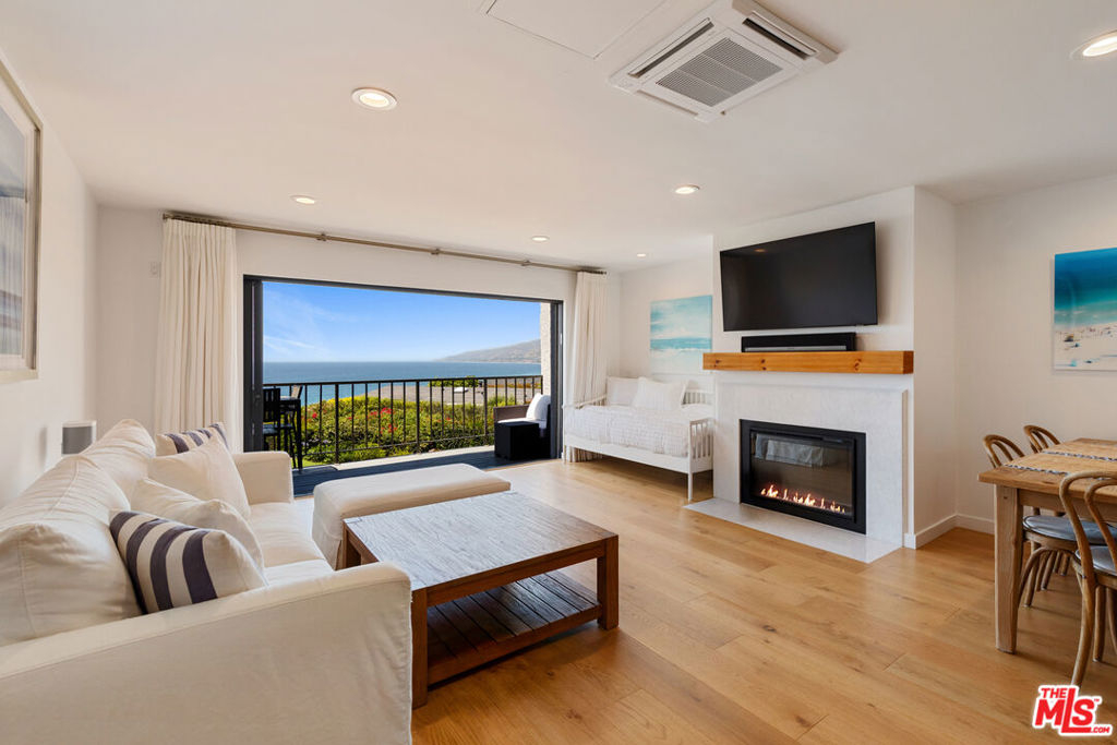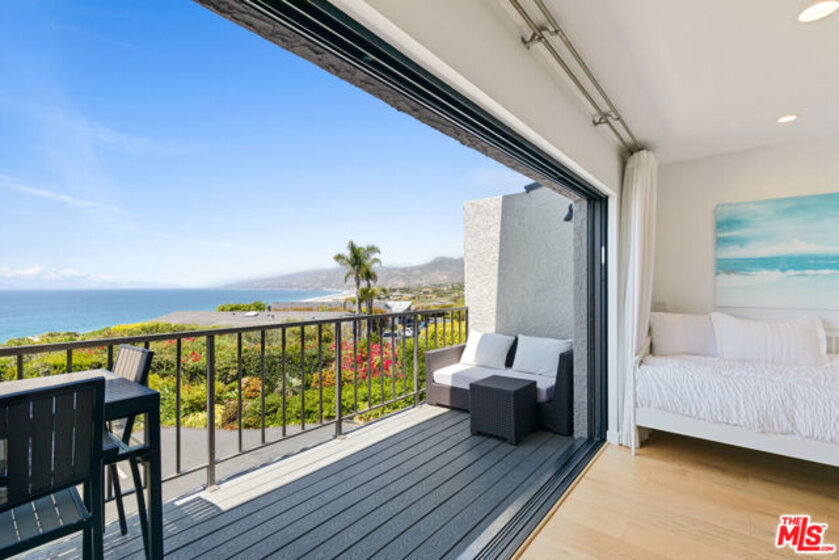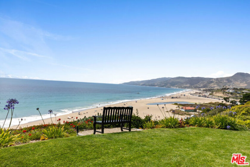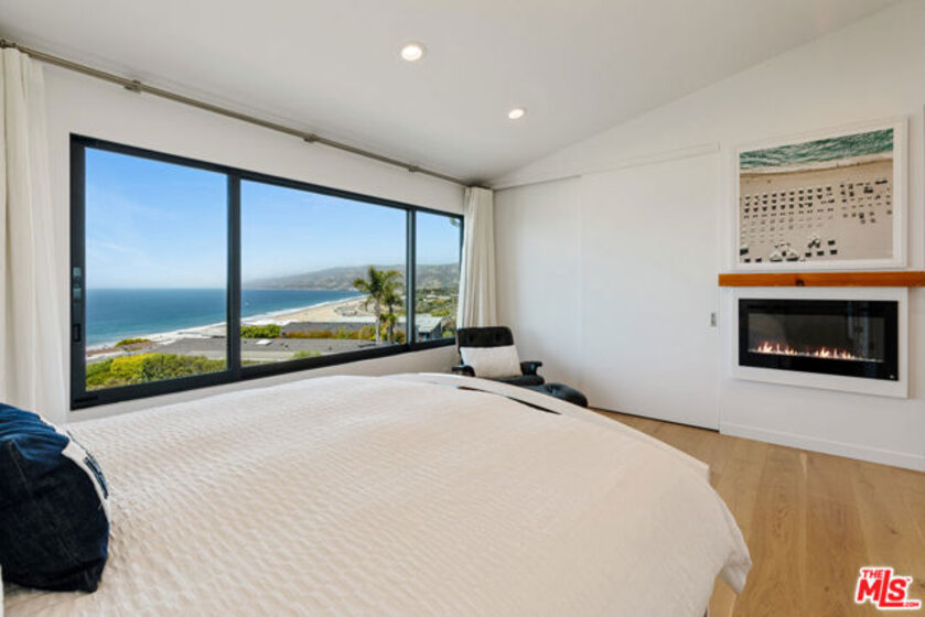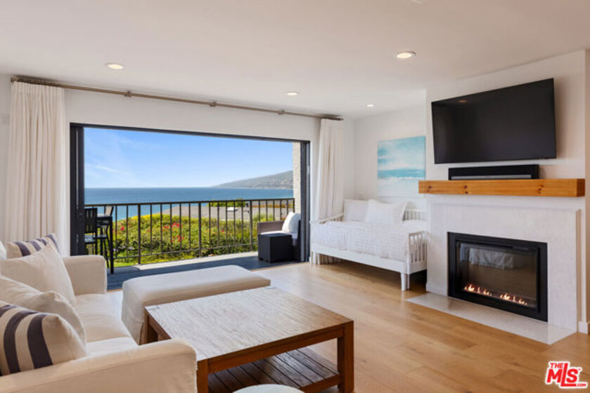 Set on a prime blufftop in Zuma Bay Villas, this residence offers sweeping white water ocean, island, and sunset views. The interior features clean lines, wood floors, marble countertops, and a bright living space that opens to an ocean-facing terrace through a large pocket sliding glass door. The kitchen includes an island, modern finishes, and stainless steel appliances. Upstairs are two en-suite bedrooms, including a primary suite with fireplace and a resort spa-like bath with ocean views. Additional features include a powder room, two-car garage, and a private front patio. The garage has been upgraded with epoxy flooring. Zuma Bay Villas offers gated security, a salt water heated year round pool, hot tub, tennis court, and direct beach access, all near Point Dume, local shops, and top rated schools. Recently updated and turn key move-in ready, with permitted renovations, a newer roof, battery backup system, modern fireplaces, and keyless entry.